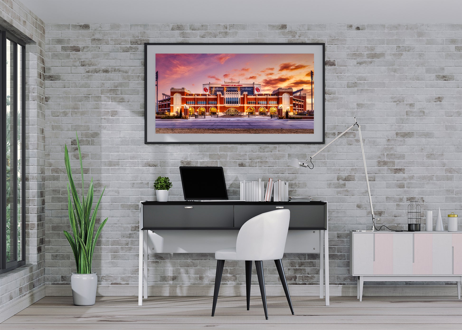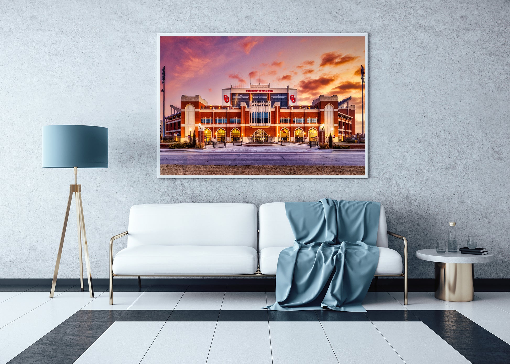 Un complemento perfecto para aficionados fieles, exalumnos o cualquier persona vinculada a Norman, esta pieza captura el espíritu del partido antes de que llegue la multitud. Es un homenaje atemporal a la tradición, la unidad y el legado perdurable del fútbol americano de Oklahoma.