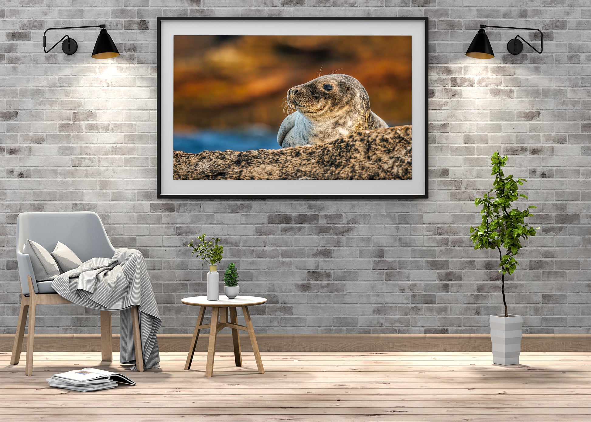 Este encantador momento evoca una sensación de inocencia y conexión con la naturaleza costera. Perfecto para amantes de los animales y del océano, este estampado aporta calidez y carácter a cualquier espacio con su delicado tema y su pintoresco entorno.