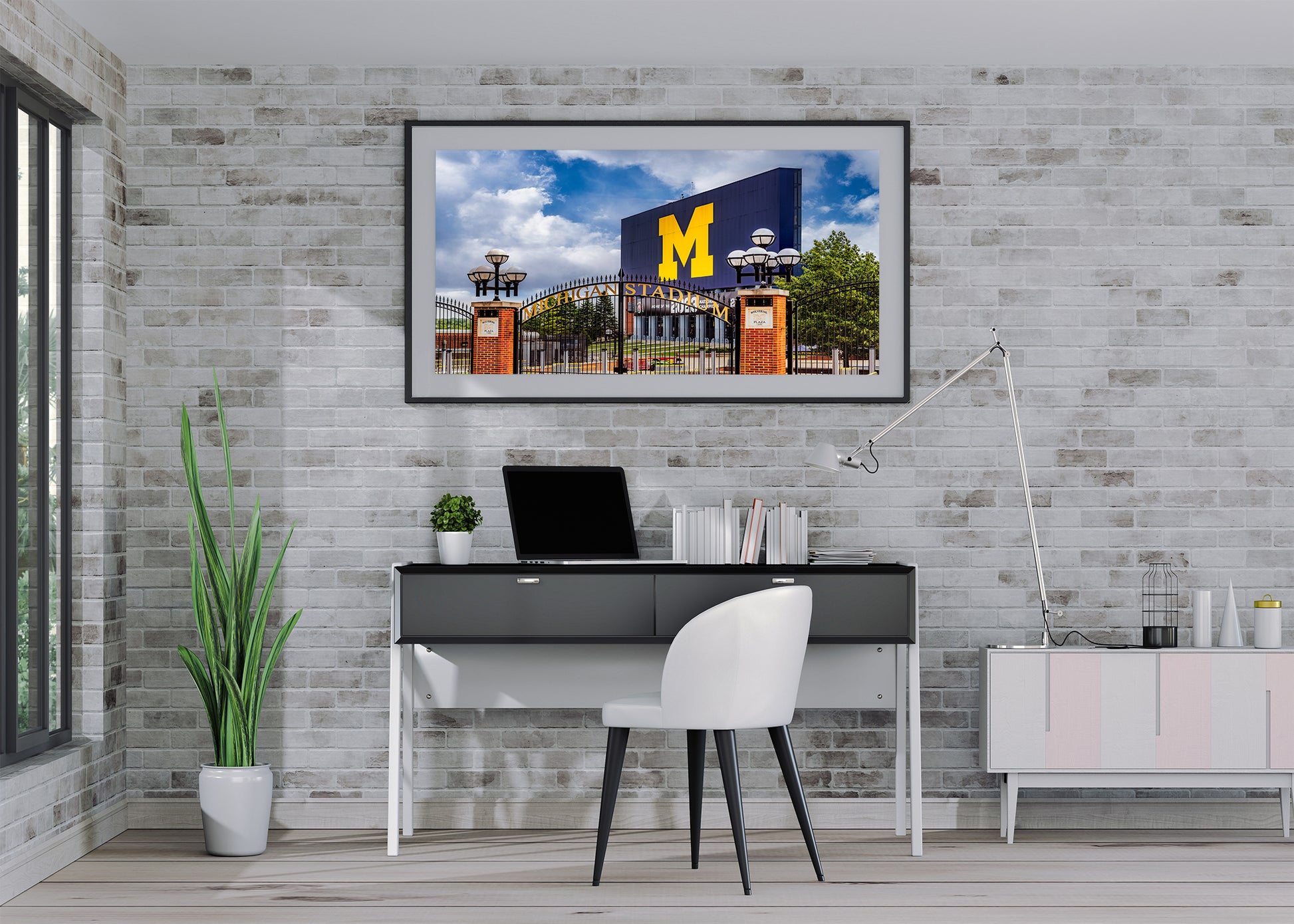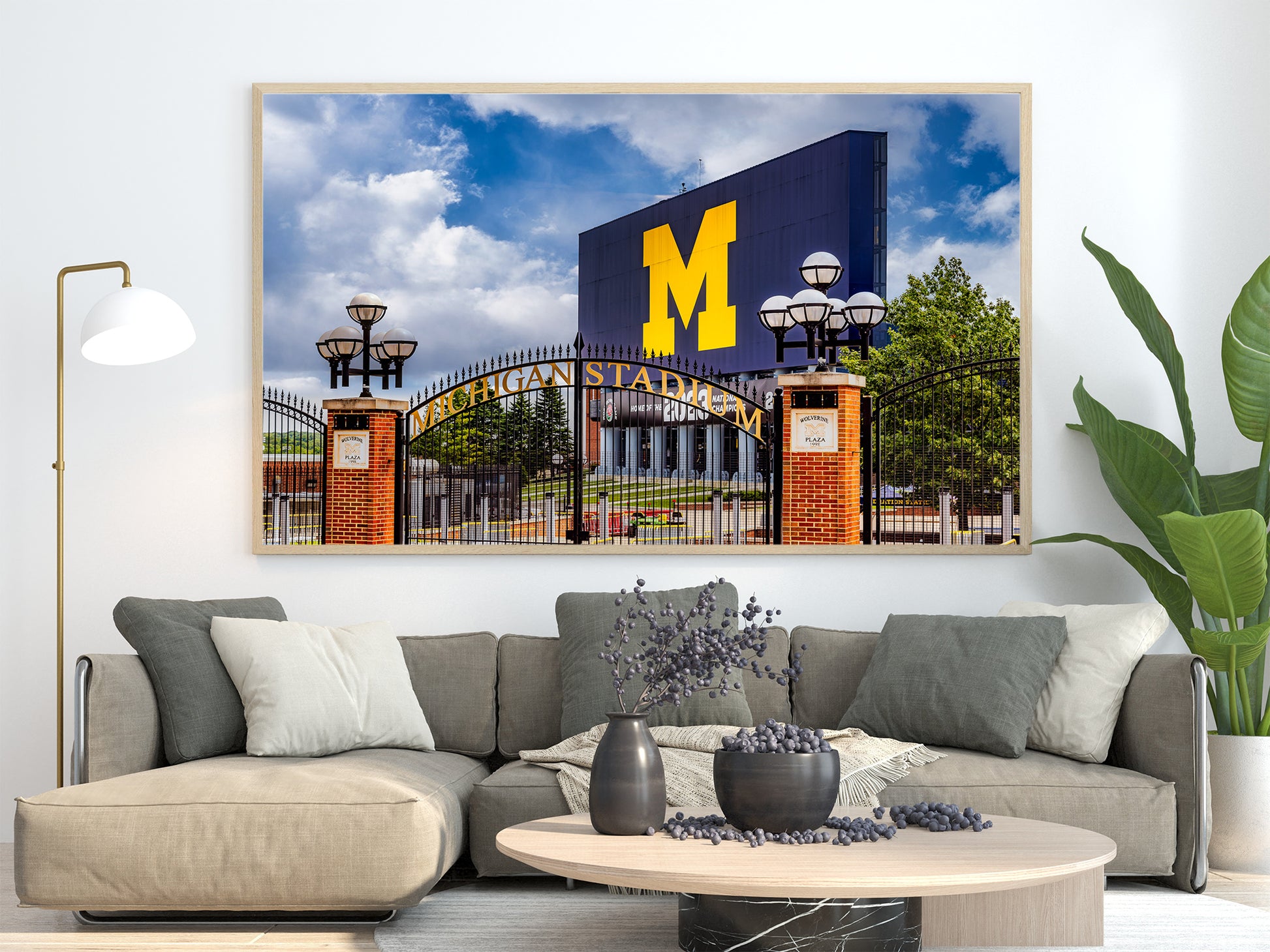 Esta imagen lleva la energía del recinto más legendario de Ann Arbor a tu espacio, ofreciendo una forma impactante de celebrar el orgullo de Michigan. Sus líneas limpias, colores vibrantes y un simbolismo inconfundible la convierten en una opción destacada para cualquier aficionado que busque añadir un toque significativo del patrimonio del campus a su hogar u oficina.