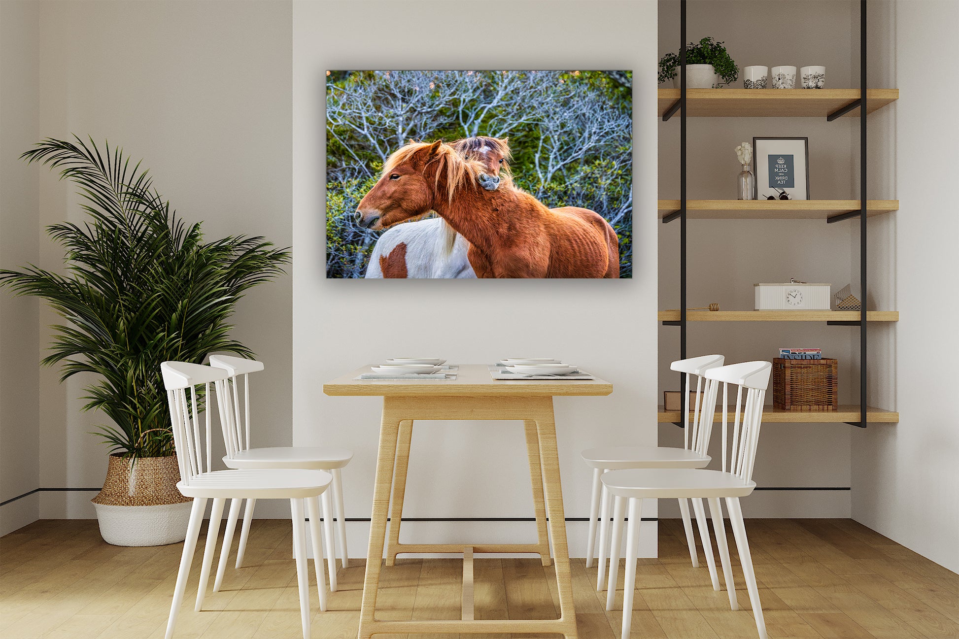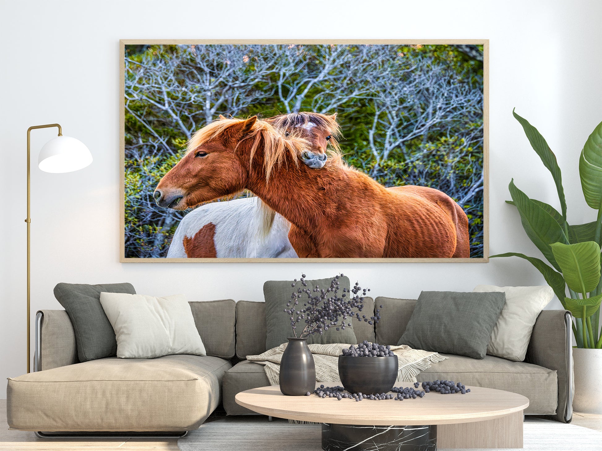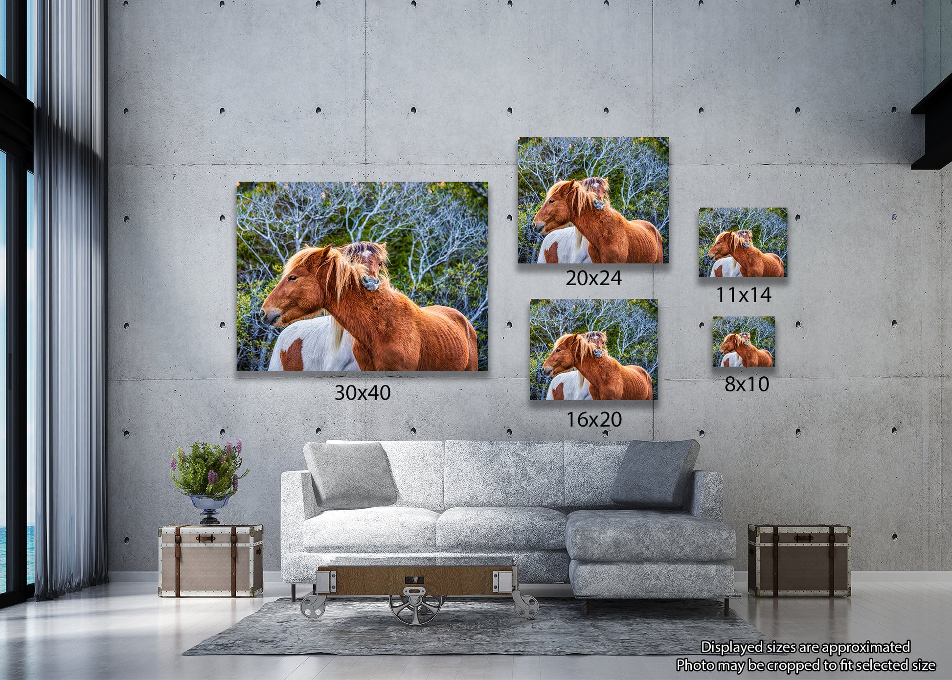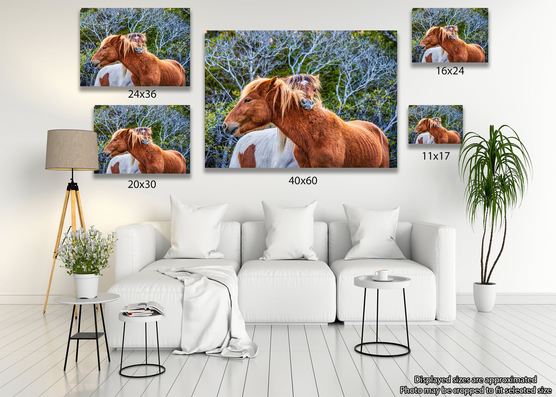Ideal para amantes de los animales y amantes de la naturaleza, esta pieza narra la vida en su ritmo natural. Aporta calma, cercanía y el encanto salvaje de Assateague a cualquier entorno.