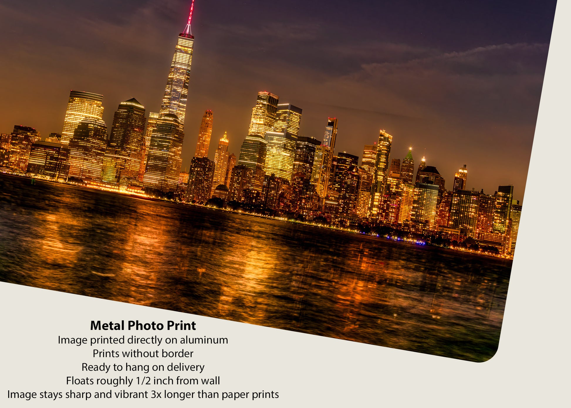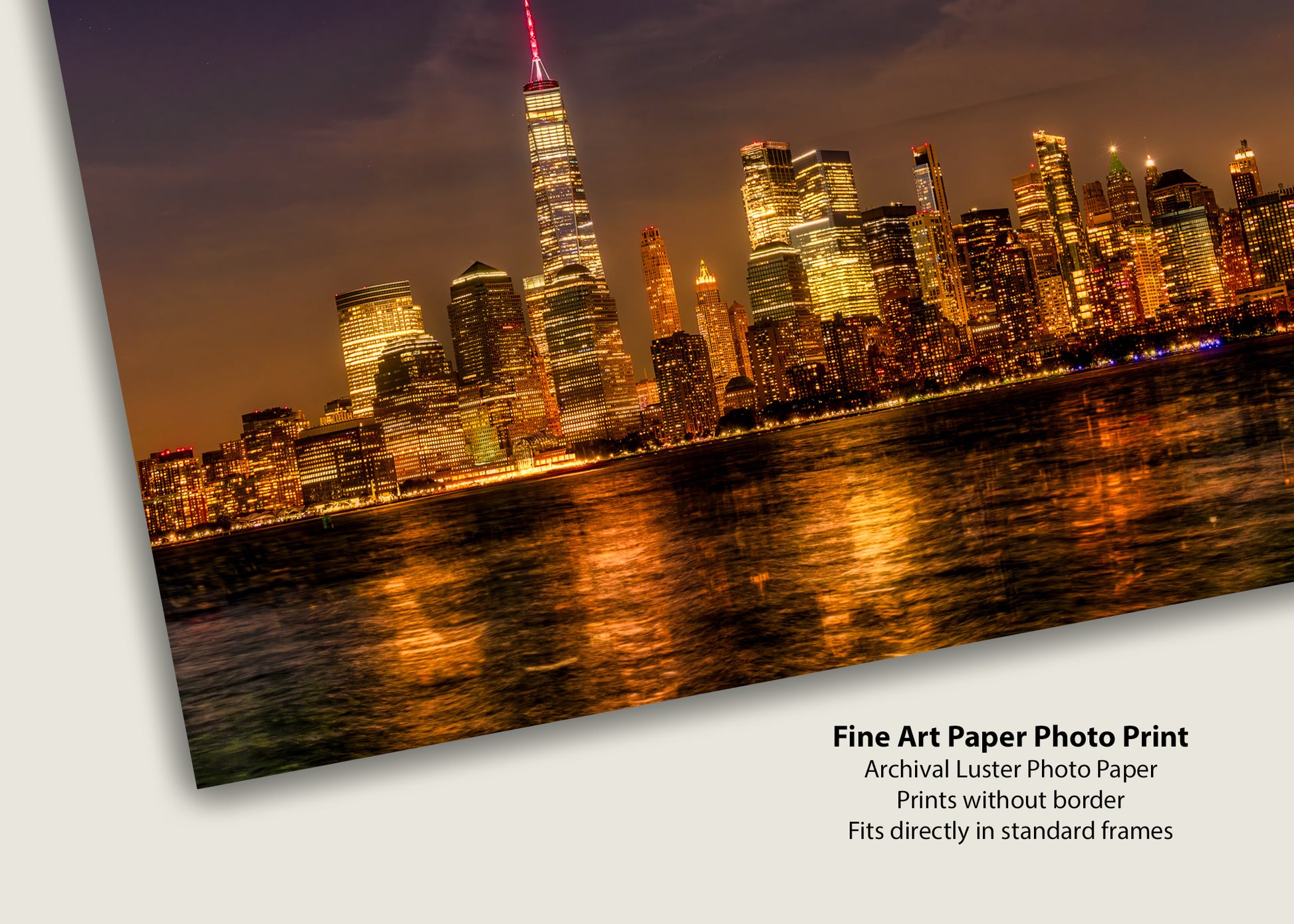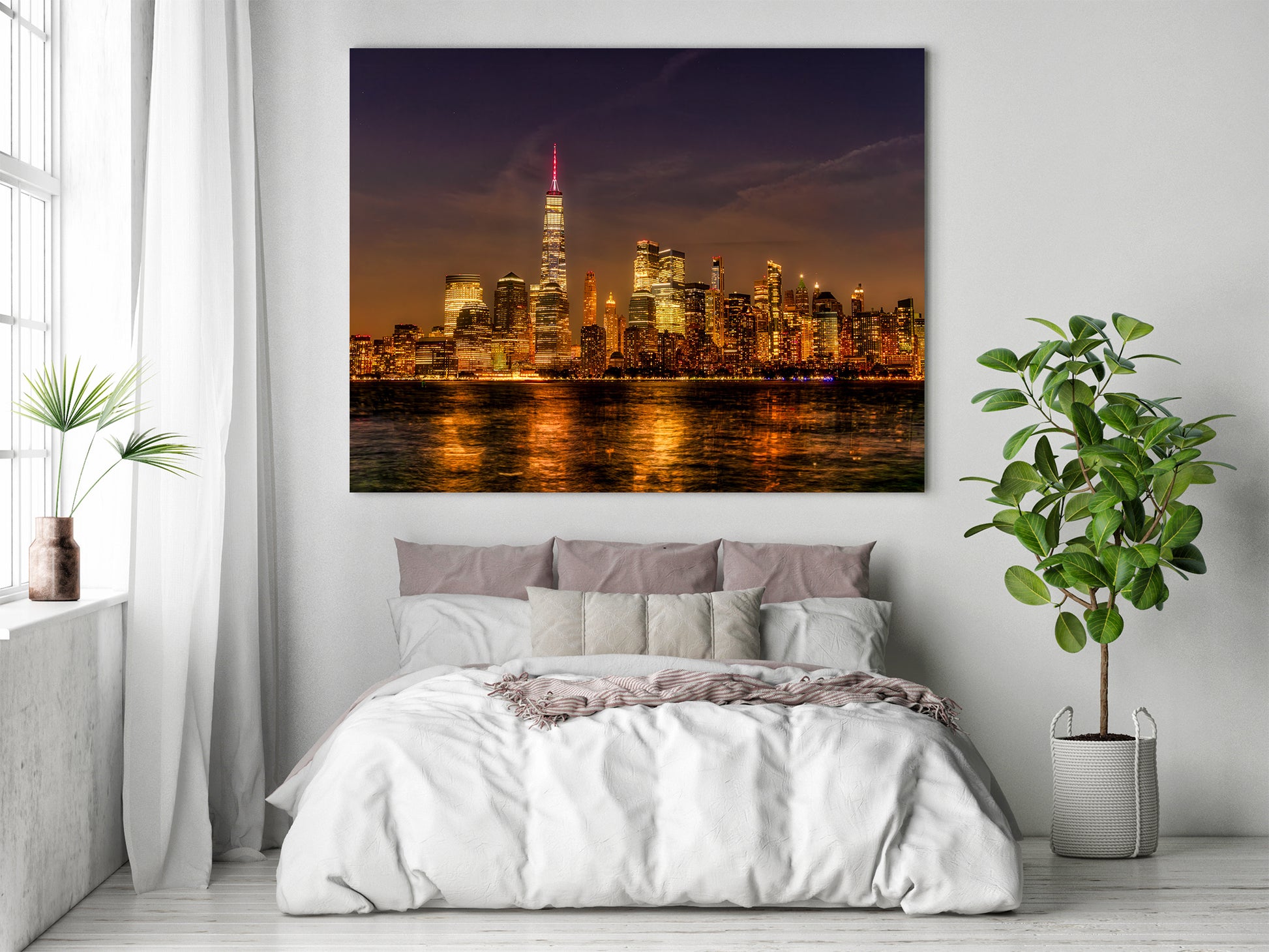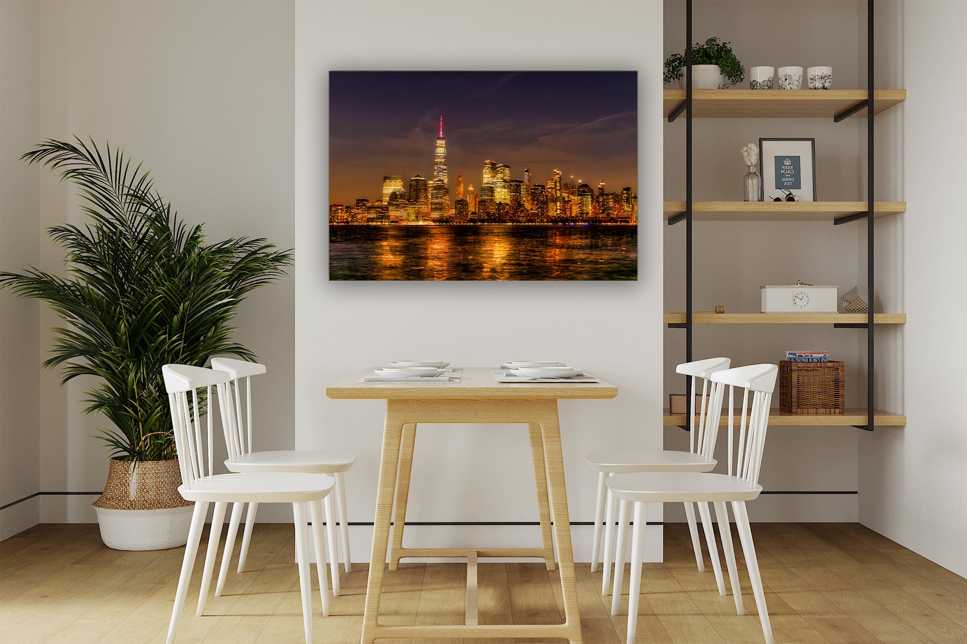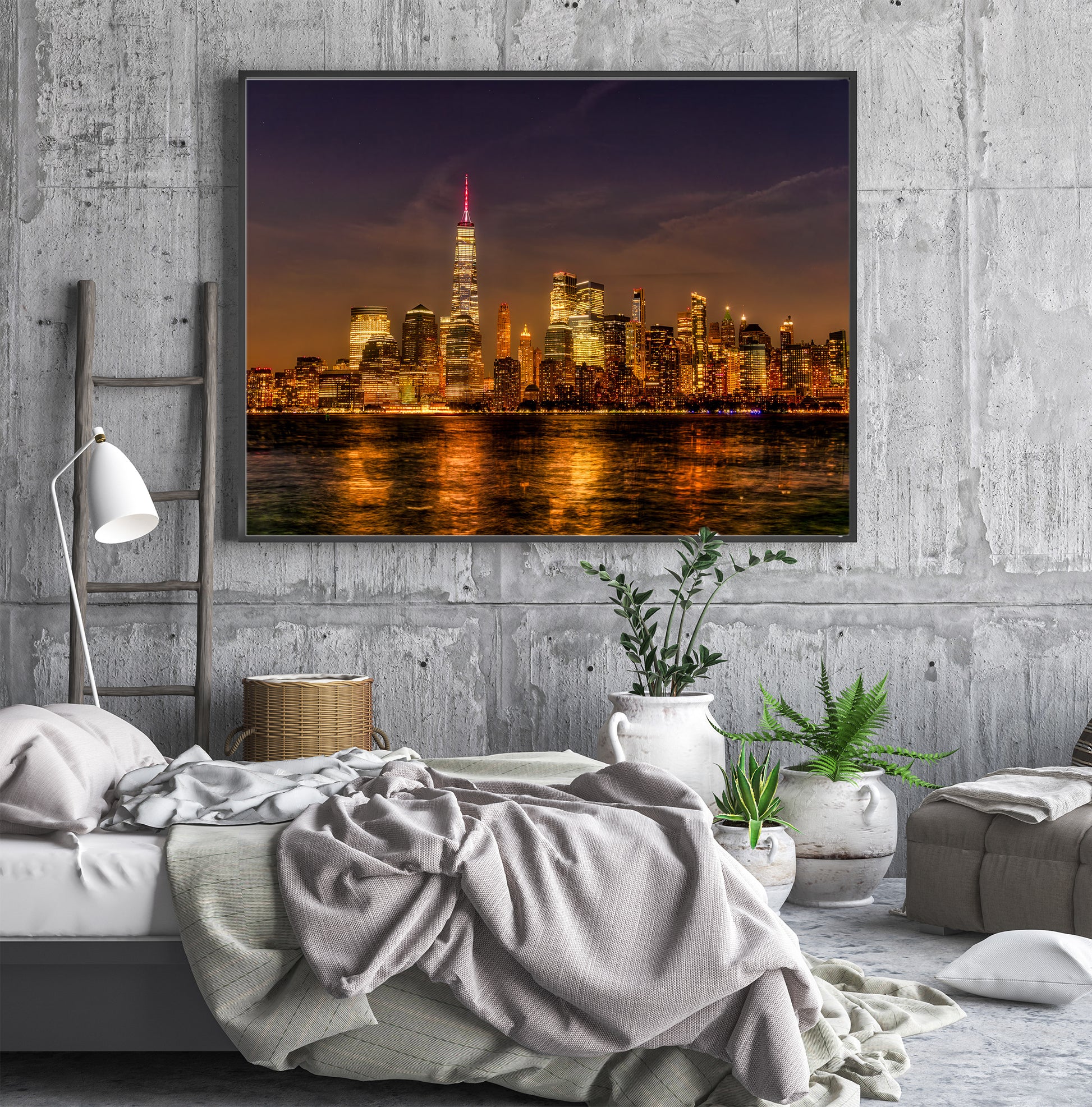 Esta fotografía aporta colores vibrantes y el espíritu de una gran ciudad a cualquier habitación. Es perfecta para quienes aman el arte del horizonte, las imágenes nocturnas o la inconfundible energía de Nueva York. Añade una pieza vívida y evocadora que capture la ciudad con un brillo único e inolvidable.
