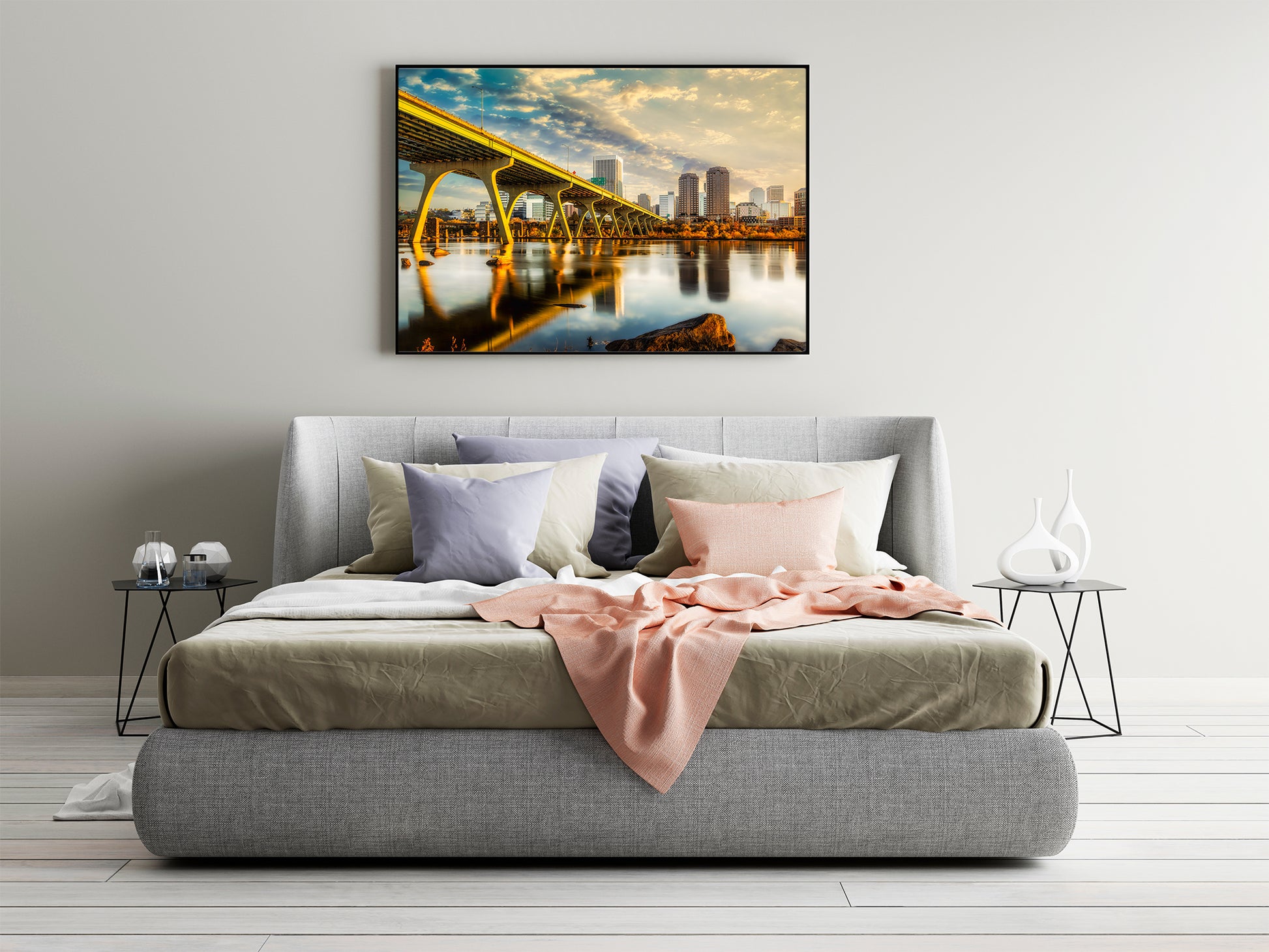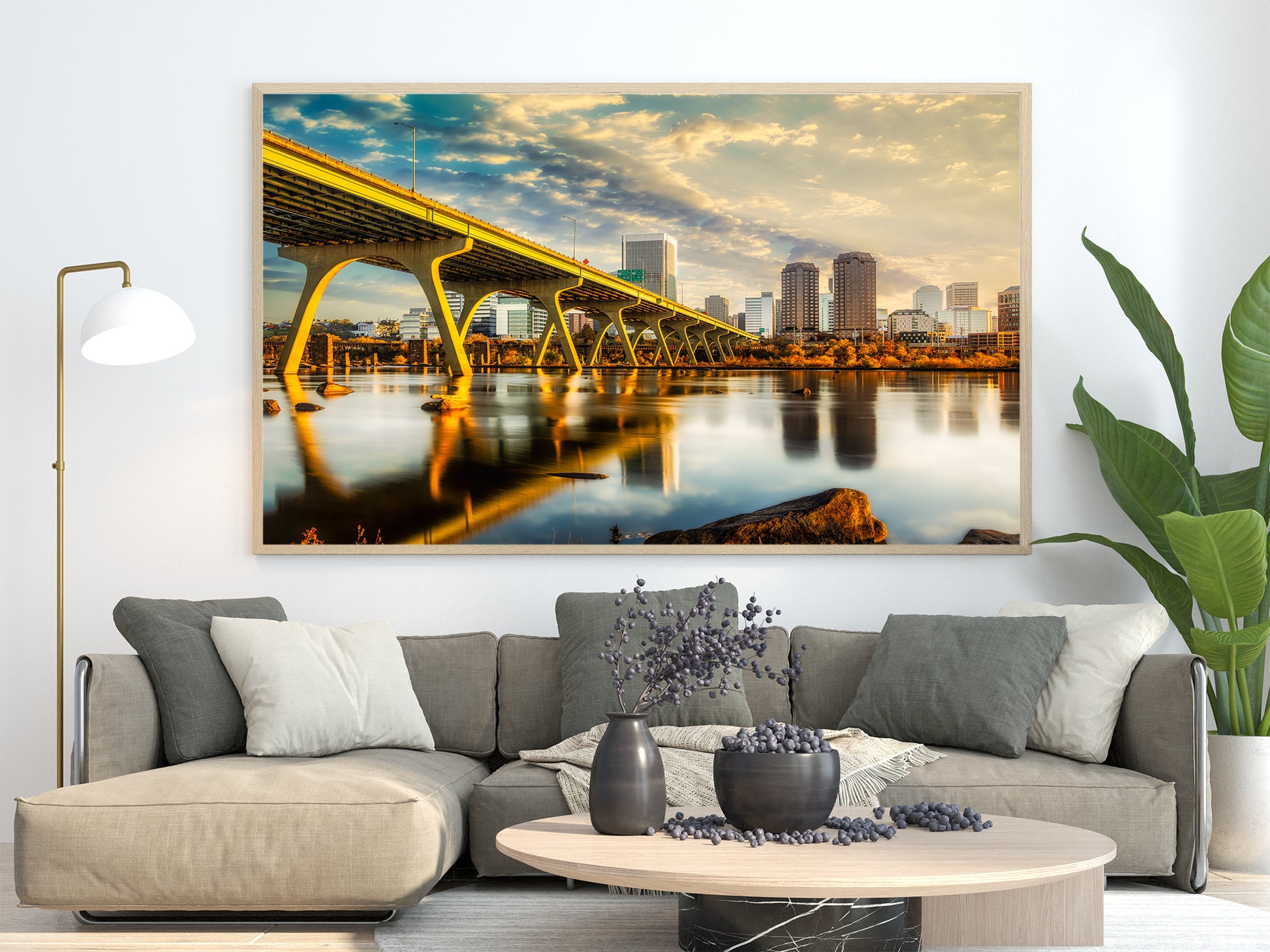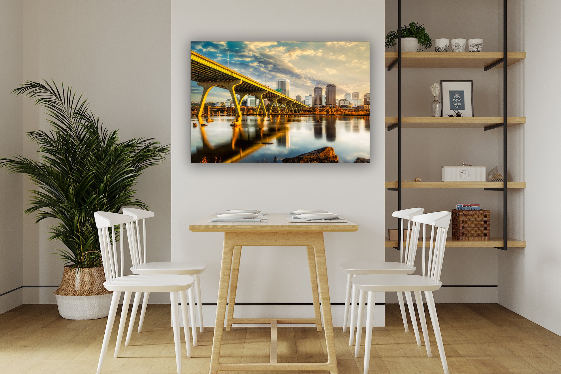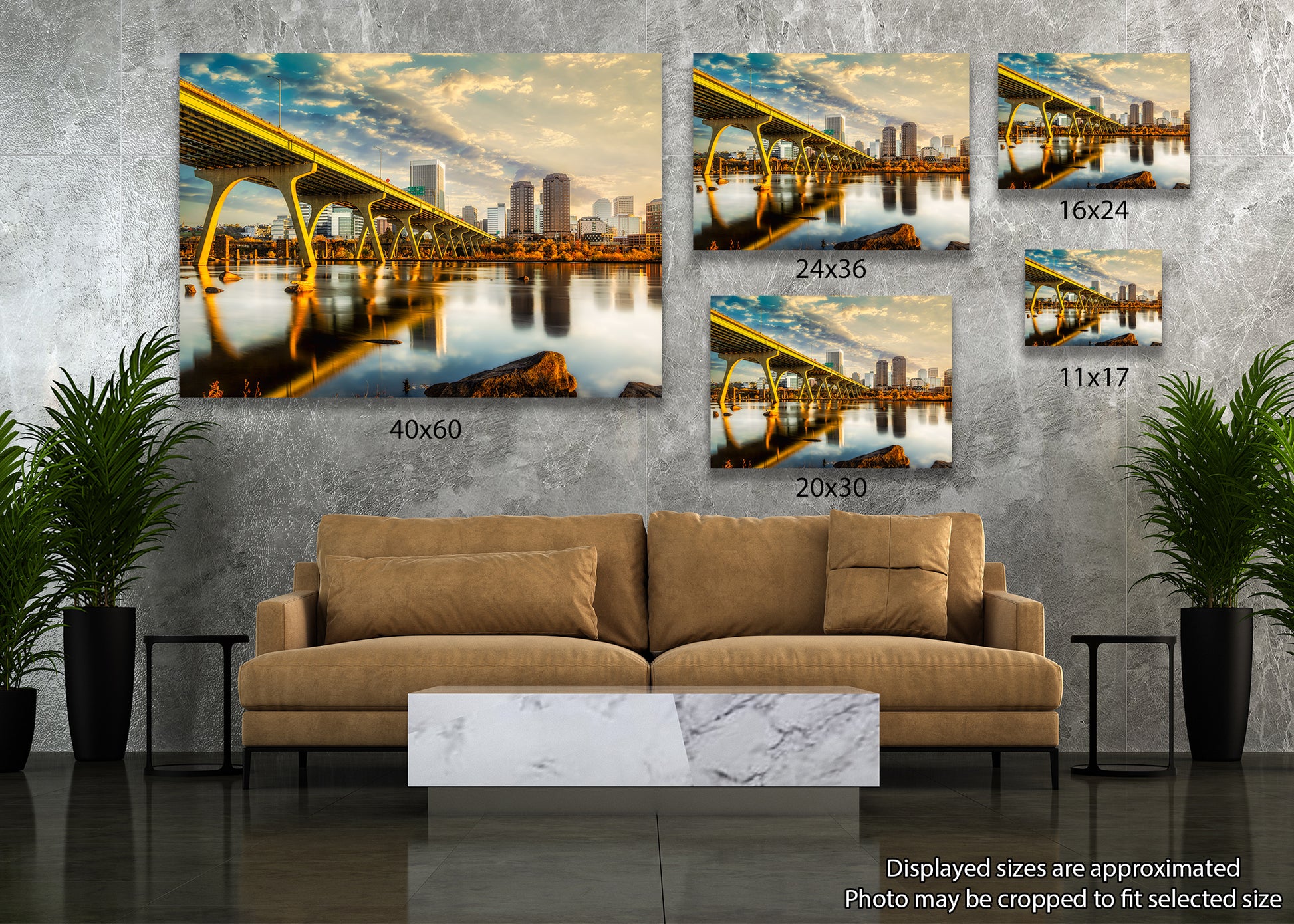 Lleve esta cautivadora vista a su hogar u oficina para celebrar la belleza de Richmond. Los colores dinámicos y la composición equilibrada de la fotografía la convierten en una pieza ideal para realzar cualquier espacio, generando conversación y admiración. Perfecta para amantes de la ciudad, residentes locales o cualquier persona atraída por los paisajes urbanos con un toque tranquilo.