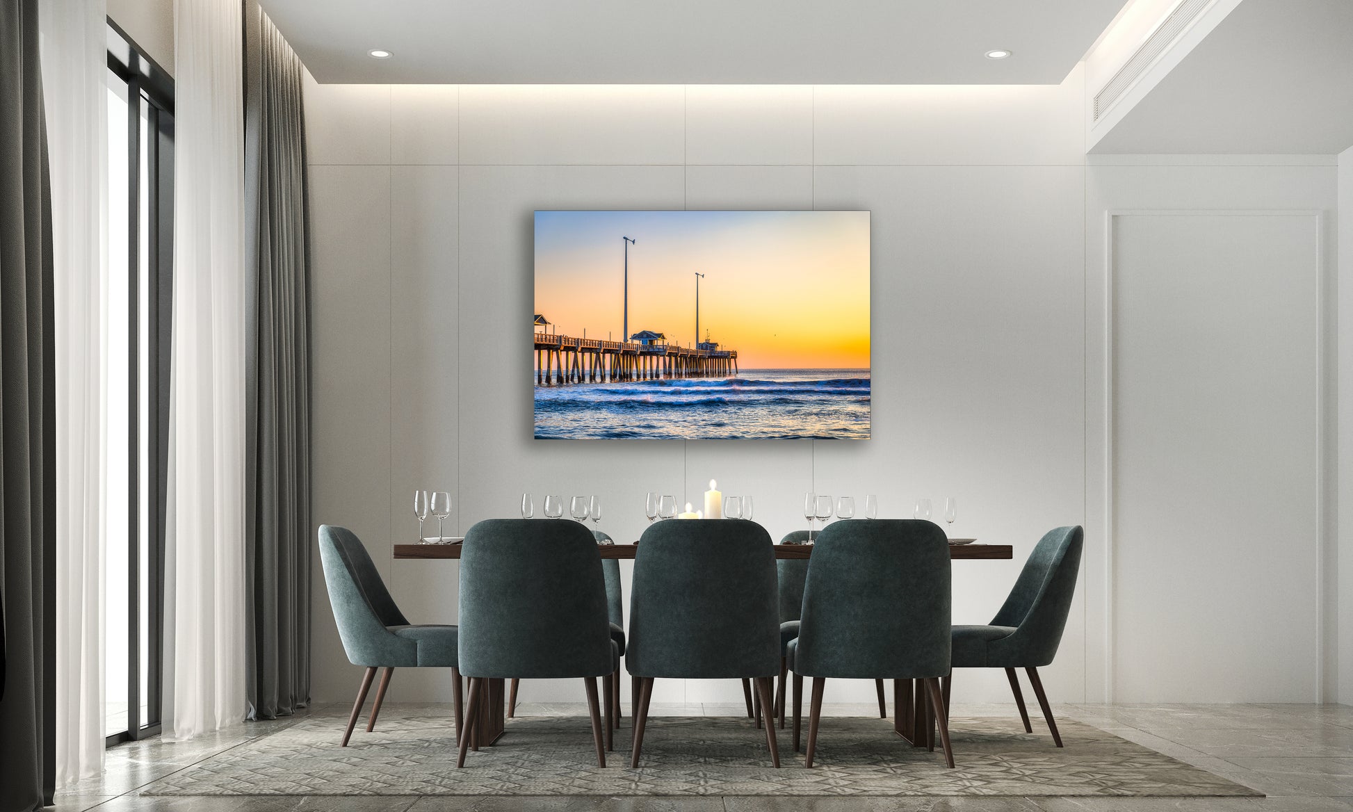 Sumérgete en la radiante belleza de la naturaleza con nuestra obra de arte mural "Jeanette Pier at Sunrise". Esta cautivadora escena captura la serenidad del amanecer en Jeanette Pier, donde el mundo despierta bajo un cielo resplandeciente de brillantes tonos amarillos y naranjas. El dinamismo de las aguas y el suave resplandor de los primeros rayos del sol crean una atmósfera impresionante y poderosa que infundirá en tu espacio la calidez y la serenidad de un nuevo día. Perfecta para quienes buscan una dosis diaria de esplendor natural, esta obra de arte mural te invita a traer la tranquilidad del amanecer a tu hogar u oficina, convirtiéndola en una encantadora adición a cualquier espacio y un inspirador recordatorio de la infinita belleza que nos rodea.