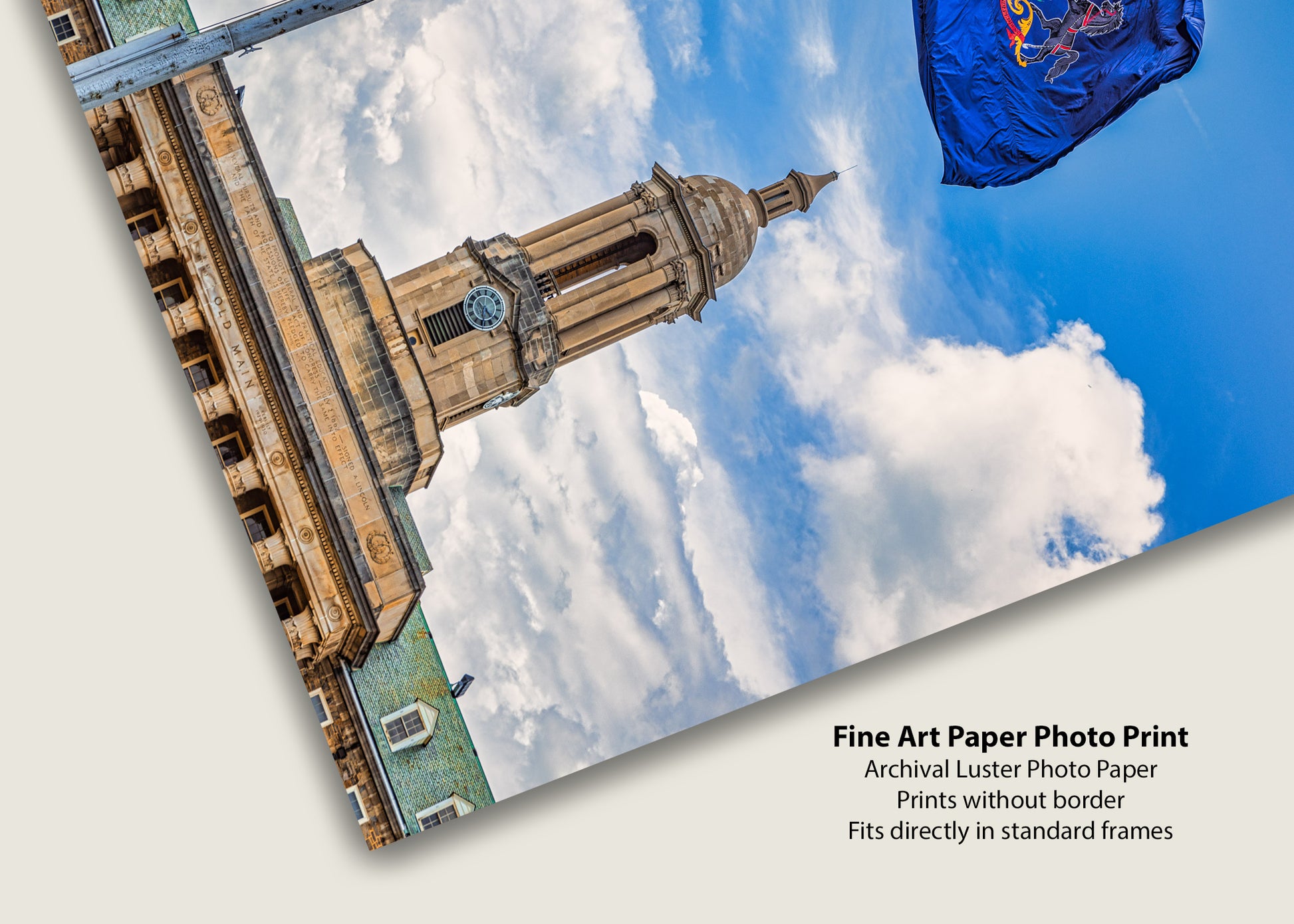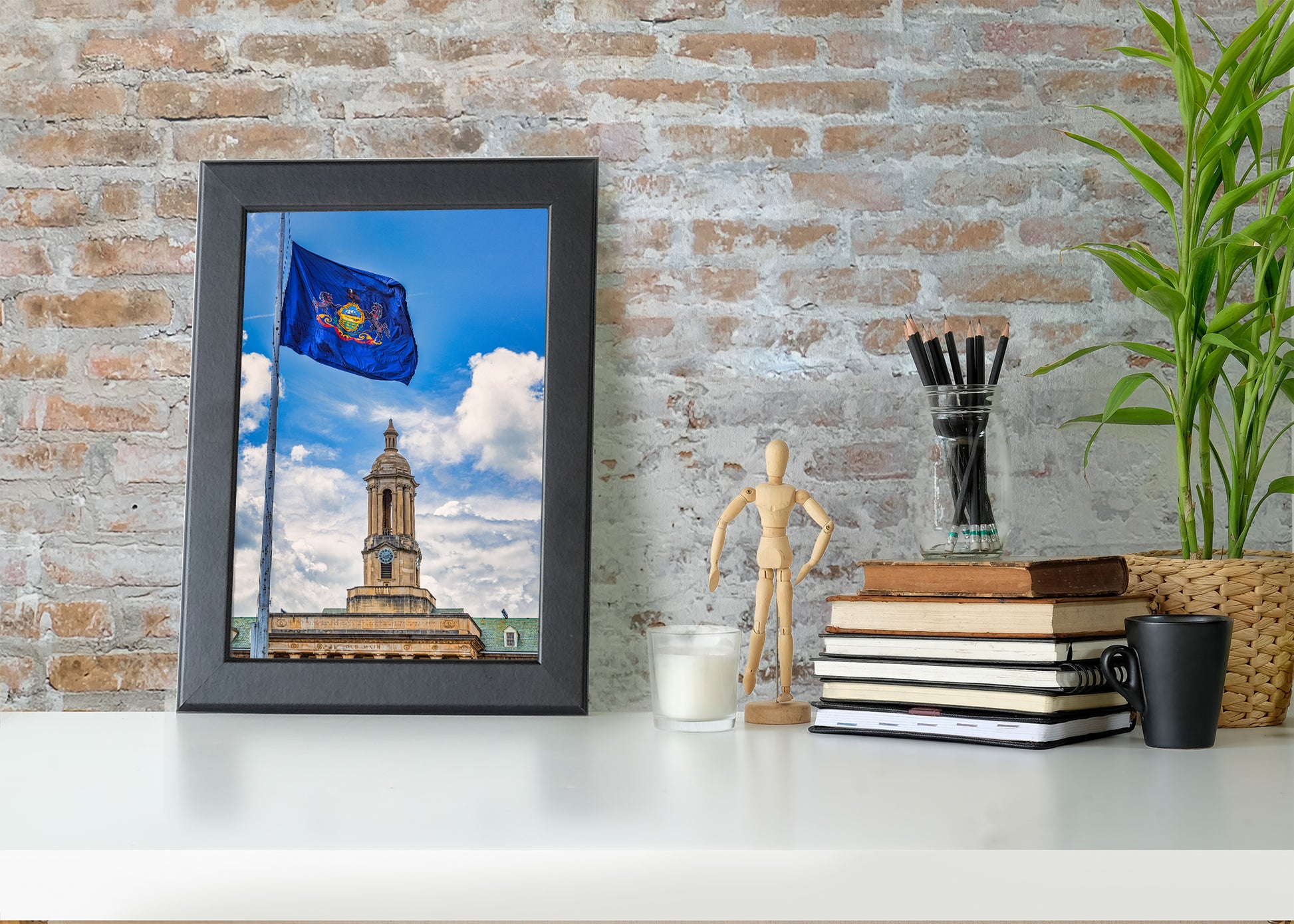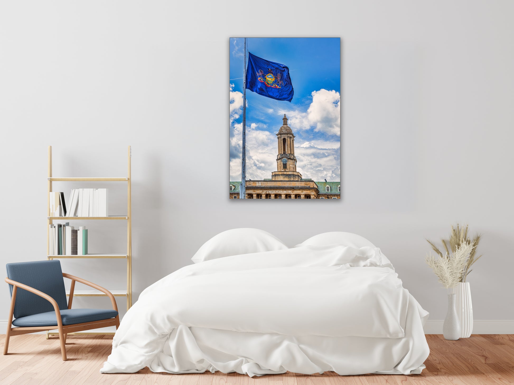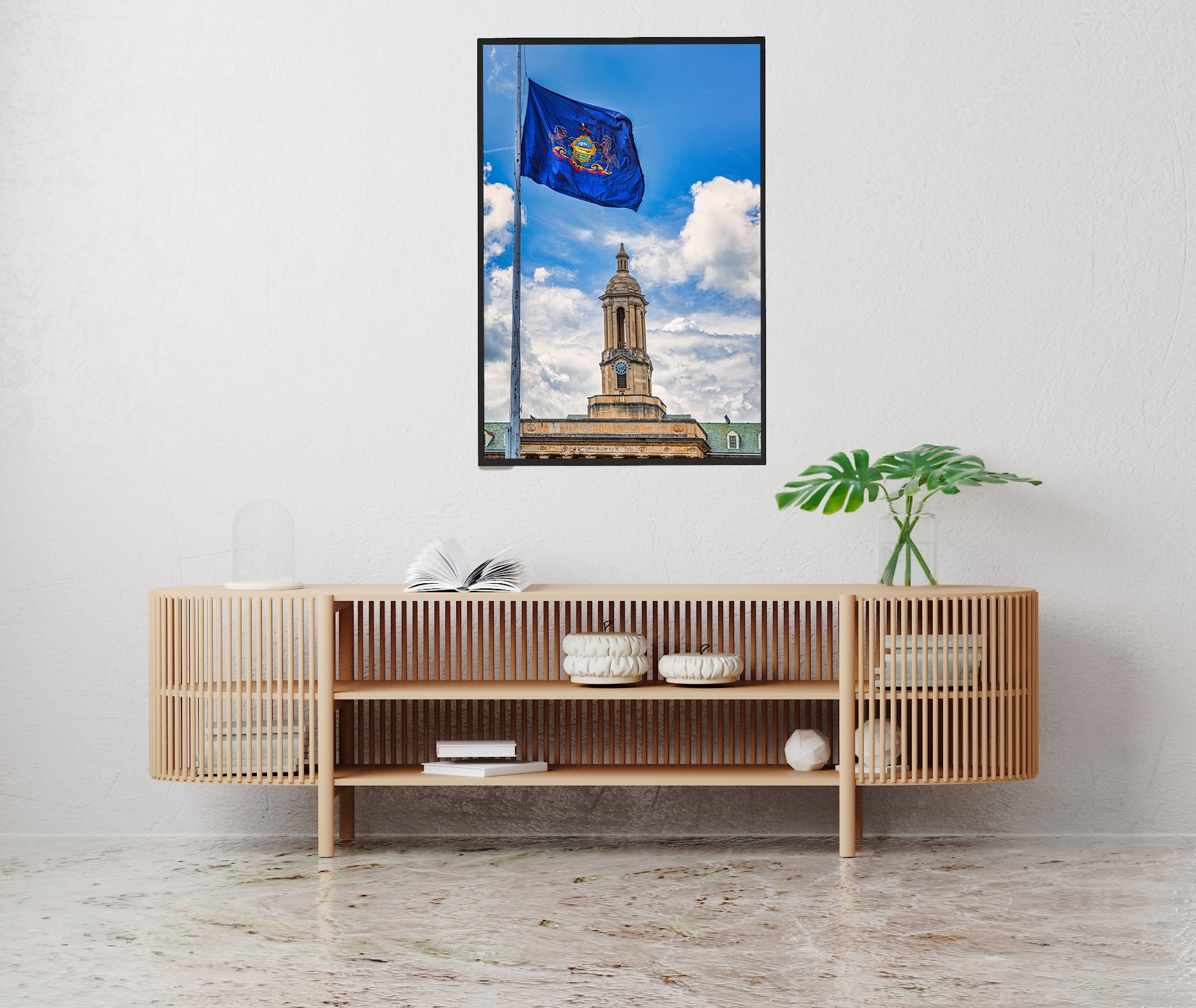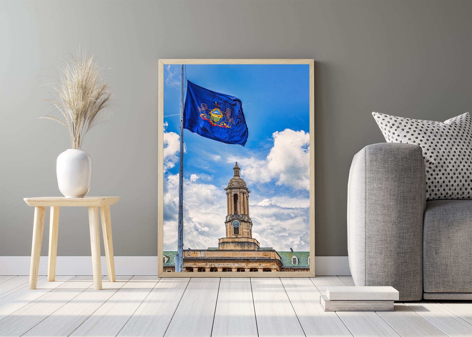 La bandera del estado de Pensilvania ondeando sobre Old Main. Sin duda, la imagen más pensilvaniana sin scrapple.