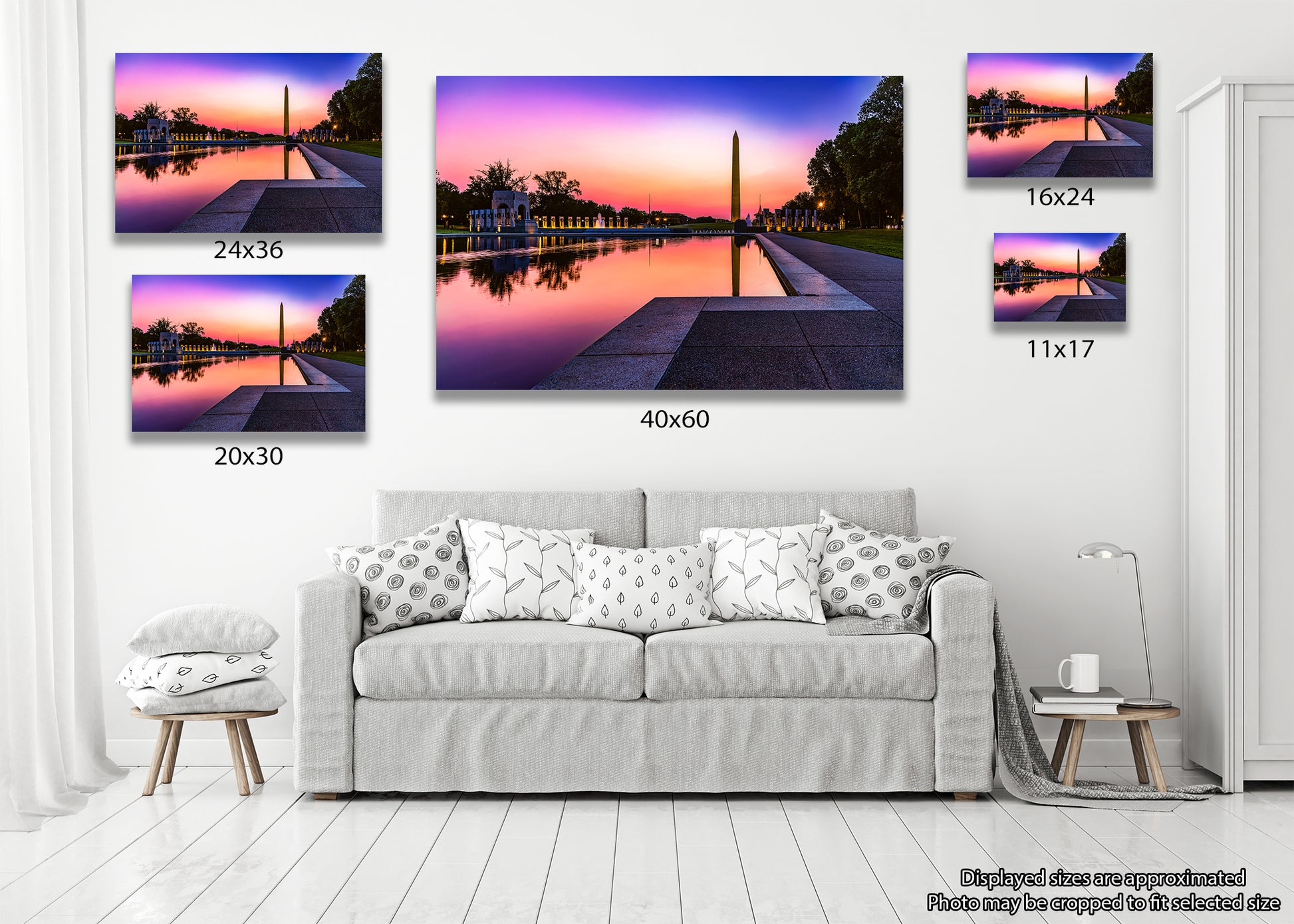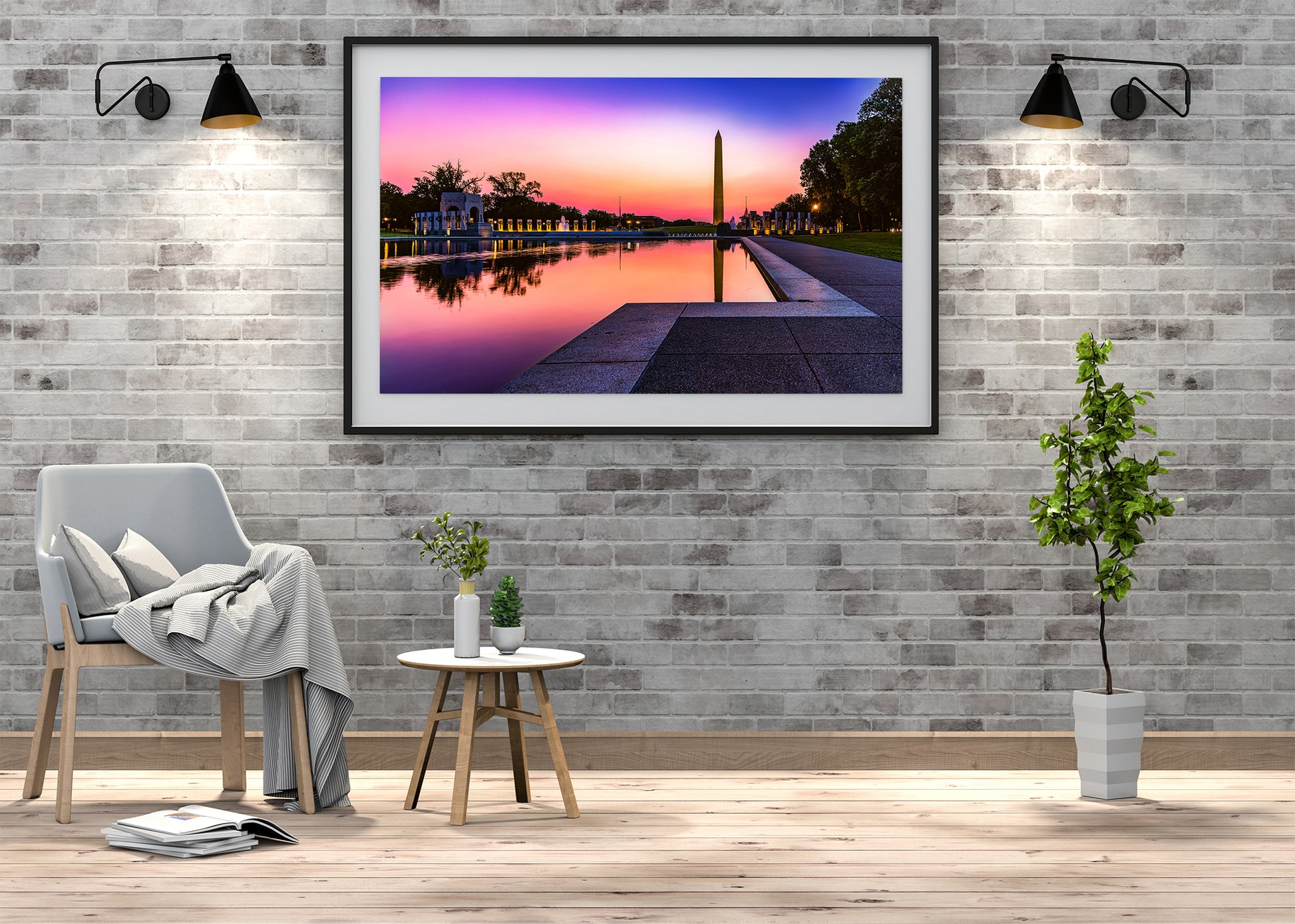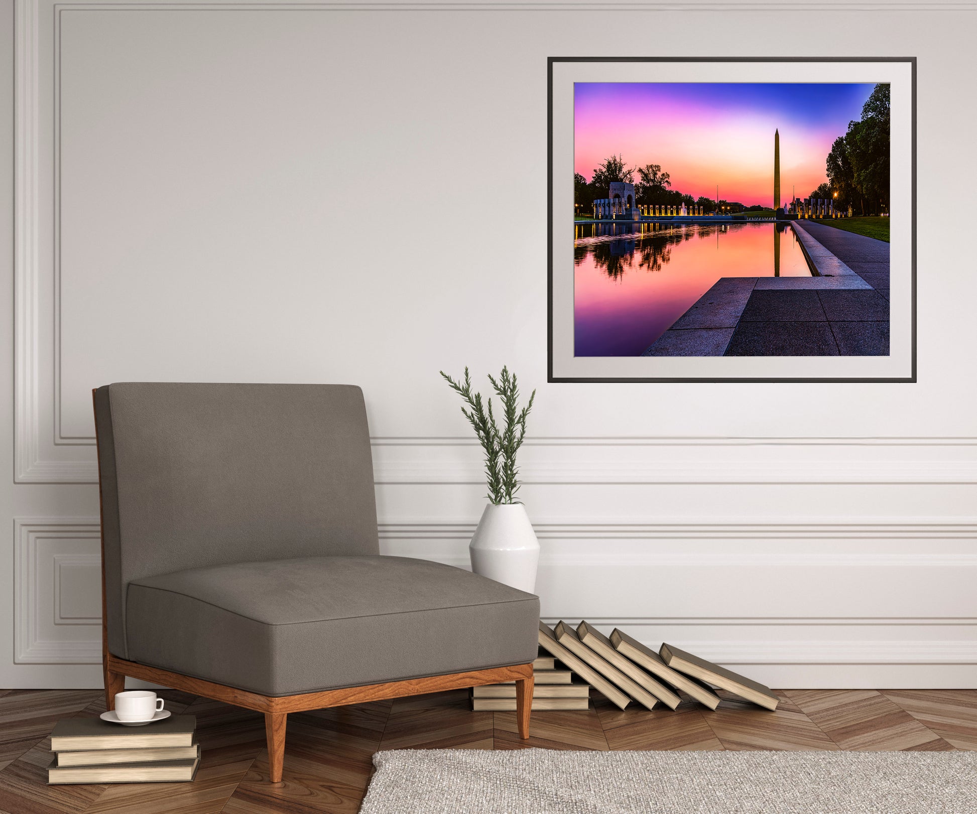 El Monumento a la Segunda Guerra Mundial en Washington D. C. suele pasarse por alto, entre el Monumento a Washington y el Monumento a Lincoln, pero rara vez se menciona junto a ellos. Sin embargo, es el monumento más bonito, compuesto por una enorme plaza con dos fuentes que conmemoran a quienes lucharon en la Segunda Guerra Mundial. Es un monumento difícil de capturar debido a su tamaño, pero el cielo adecuado puede equilibrar la imagen. El amanecer de principios de invierno ofrece un fondo brillante para una tranquila contemplación.