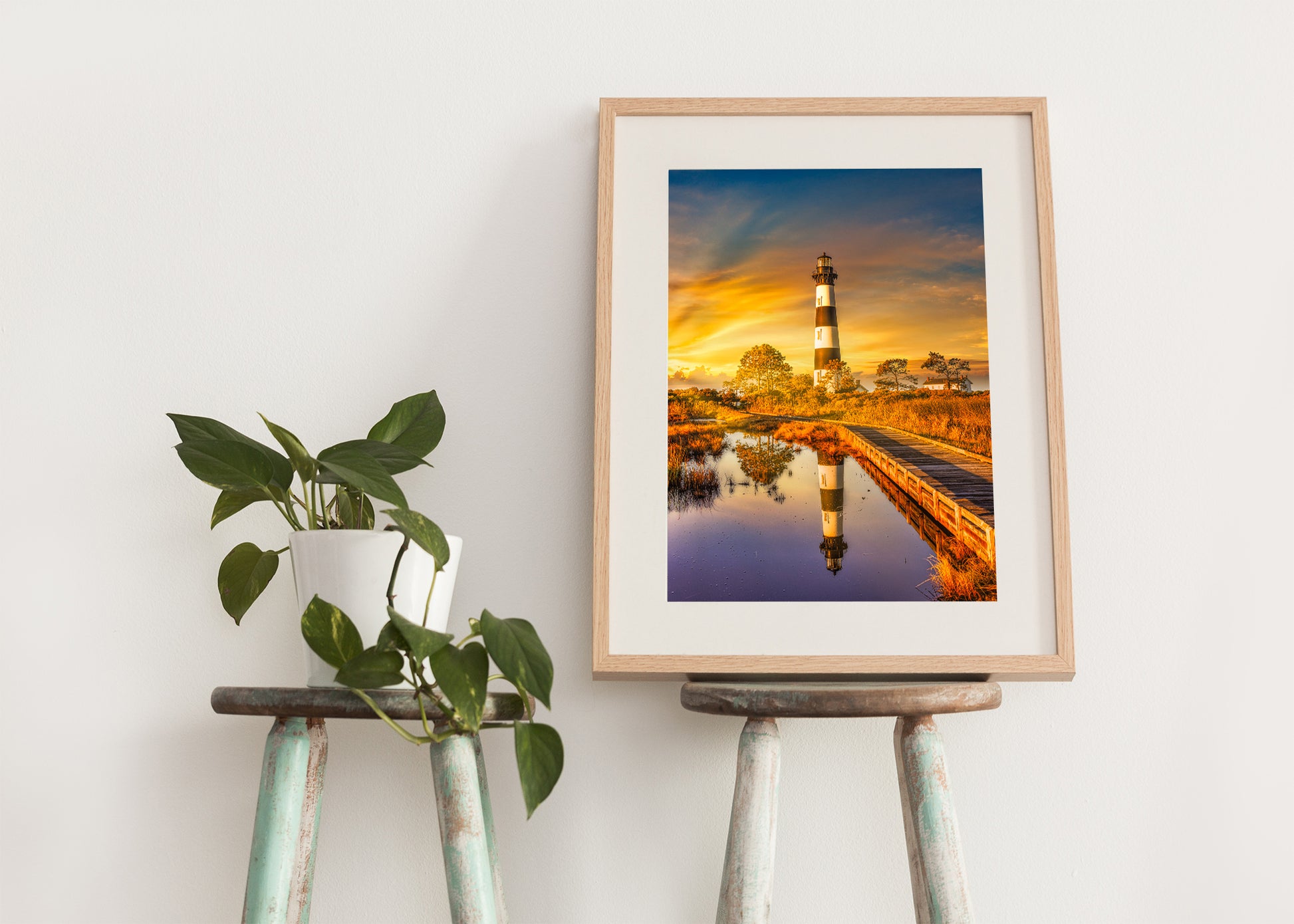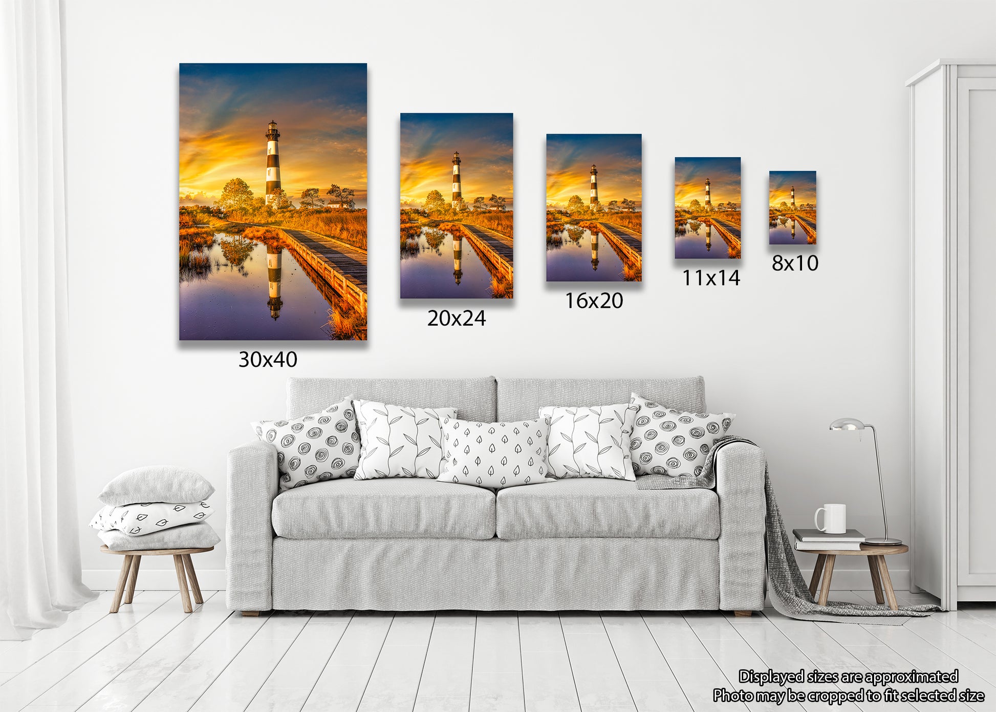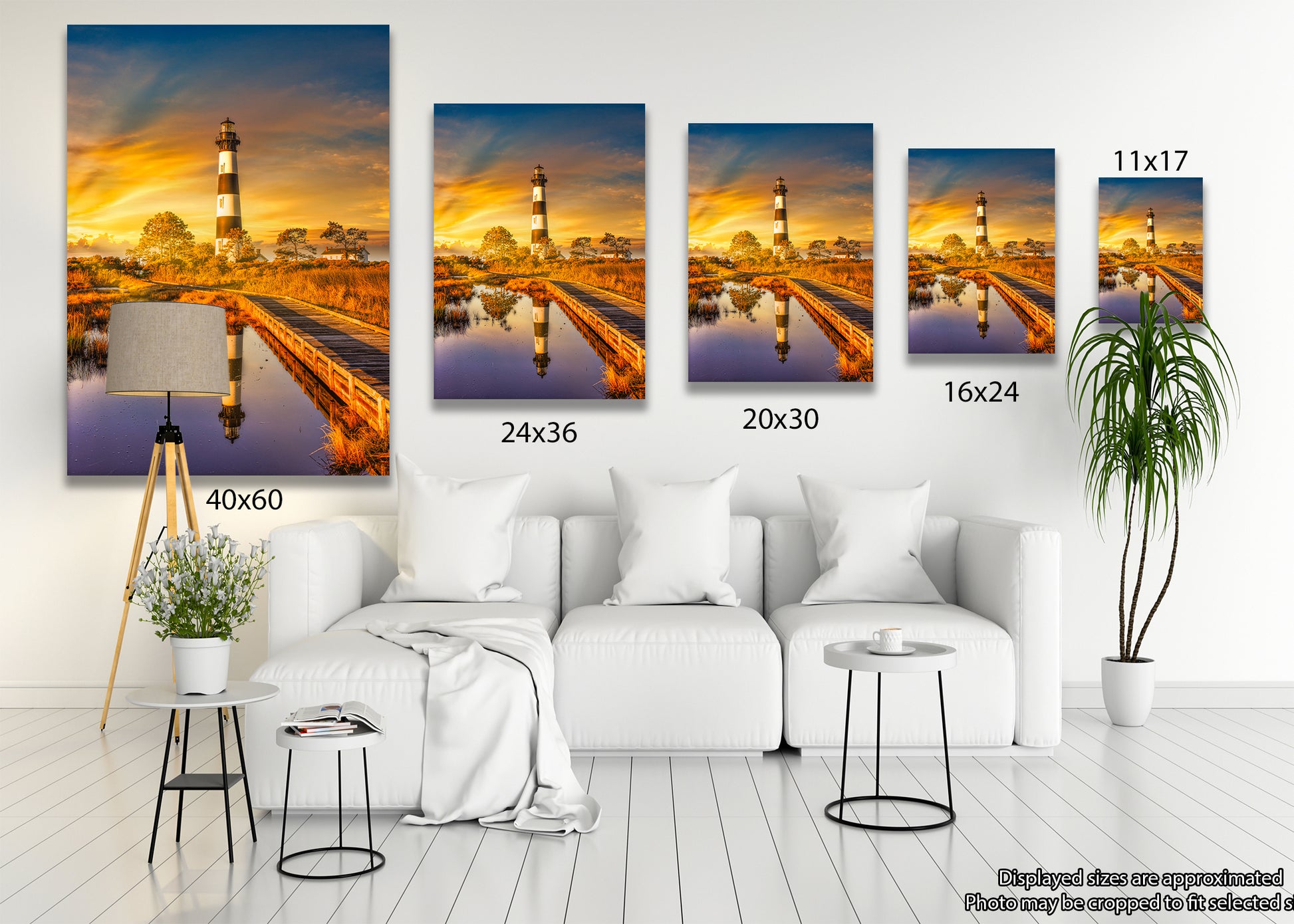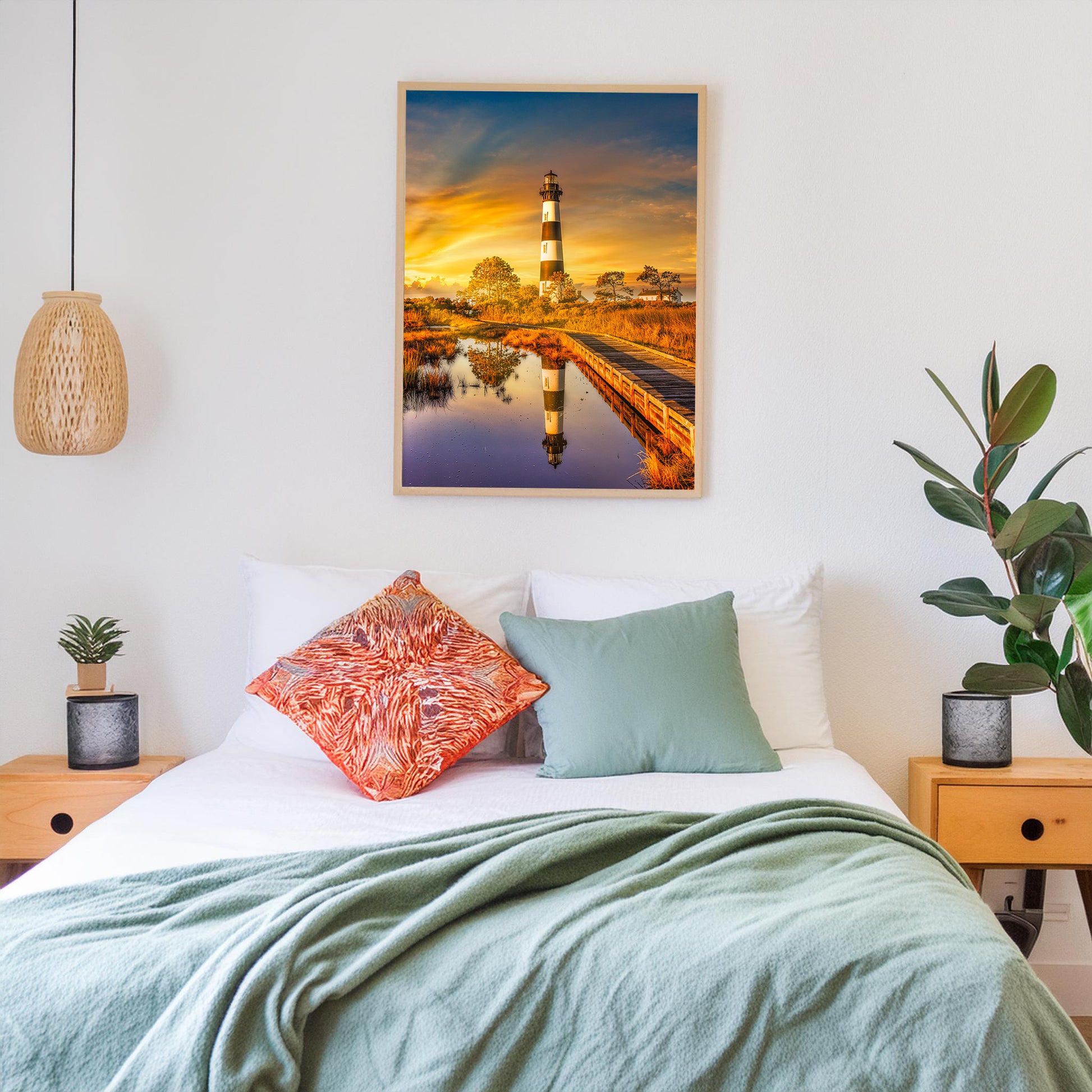Lleva la belleza del amanecer en el faro de la isla de Bodie a tu hogar con esta impresionante impresión fotográfica. Los vibrantes colores del cielo proyectan un brillo etéreo sobre el faro, creando una atmósfera de paz y serenidad. La detallada arquitectura del faro se captura a la perfección, convirtiendo esta impresión en una verdadera obra de arte. Es el complemento perfecto para cualquier habitación de tu hogar y sin duda dará que hablar. Cuélgala en la pared y transpórtate a las tranquilas costas de Carolina del Norte cada vez que la mires.