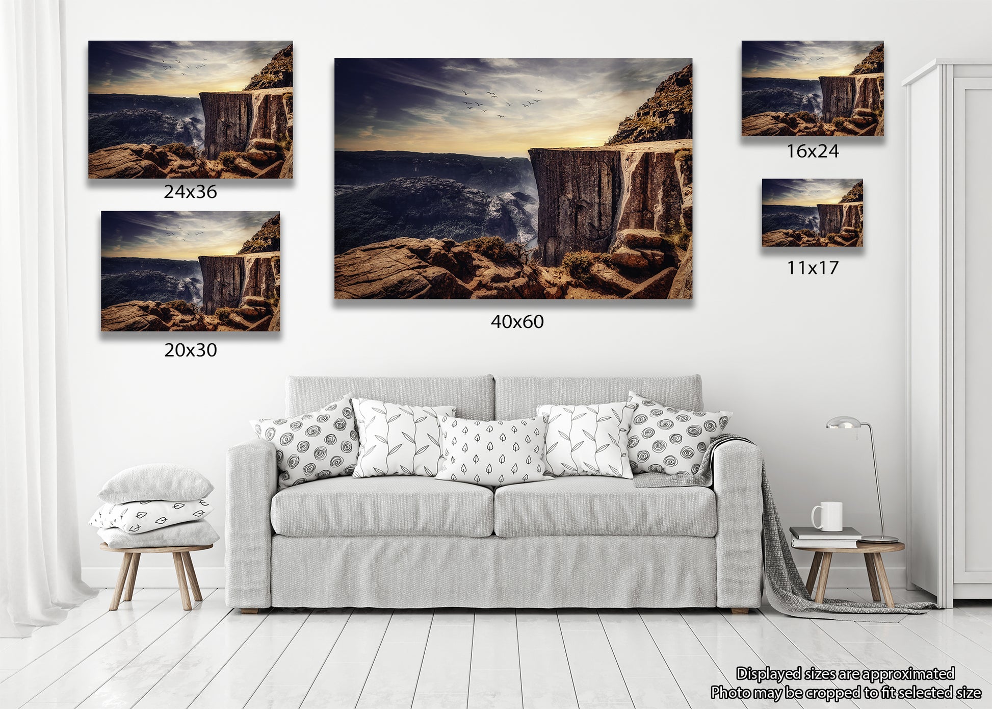 Vista del famoso acantilado de la Roca del Púlpito de Noruega, con vistas a los fiordos al amanecer. Cada segundo de la larga caminata merece la pena con la espectacular vista desde la cima.