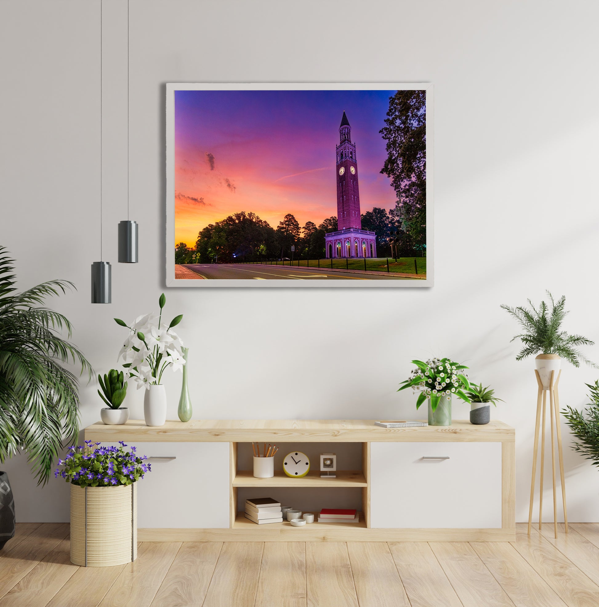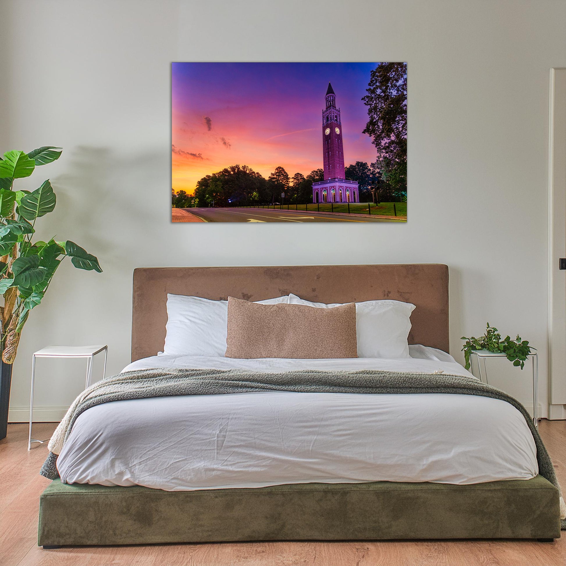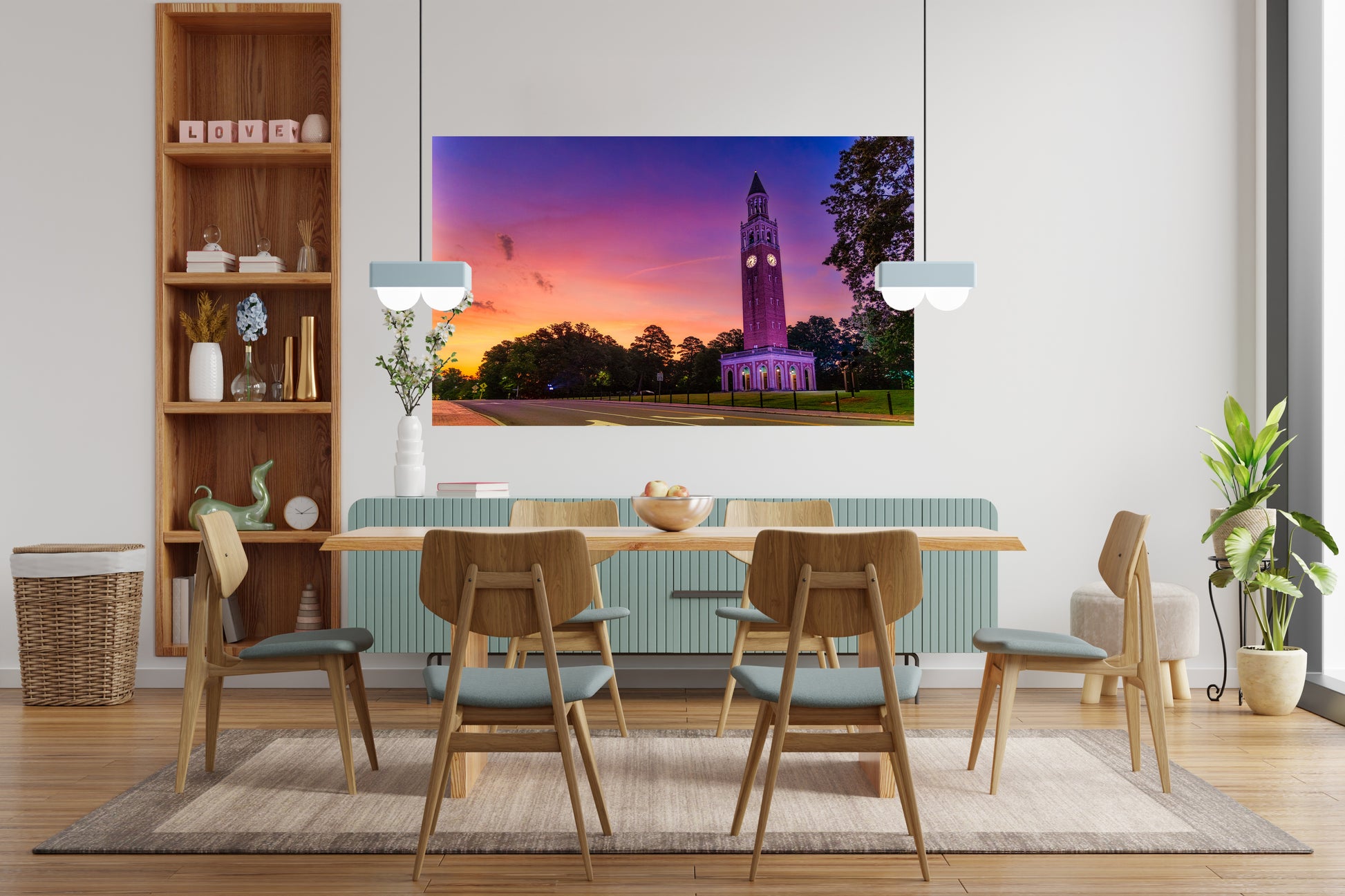 Nuestra decoración de pared "Amanecer en el Campanario" captura la impresionante belleza del Campanario Morehead-Patterson de la Universidad de Carolina del Norte en Chapel Hill. Con sus brillantes tonos de amanecer, esta obra de arte aportará calidez y luminosidad a cualquier habitación. La imagen de alta calidad está impresa en lienzo premium para una exposición duradera. Perfecta para exalumnos, estudiantes o cualquier fan de los Tar Heels, esta decoración de pared es imprescindible para cualquier espacio con temática de la UNC. Cuélgala y disfruta de un hermoso amanecer todos los días.
