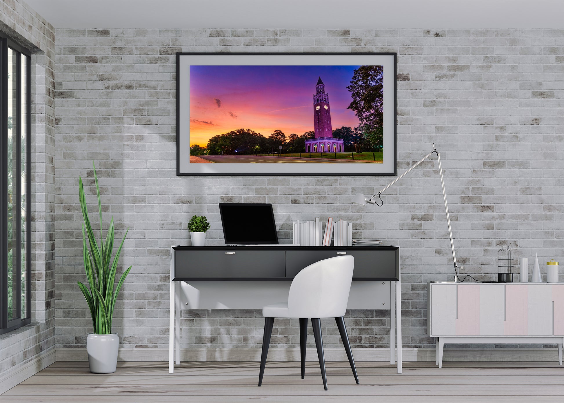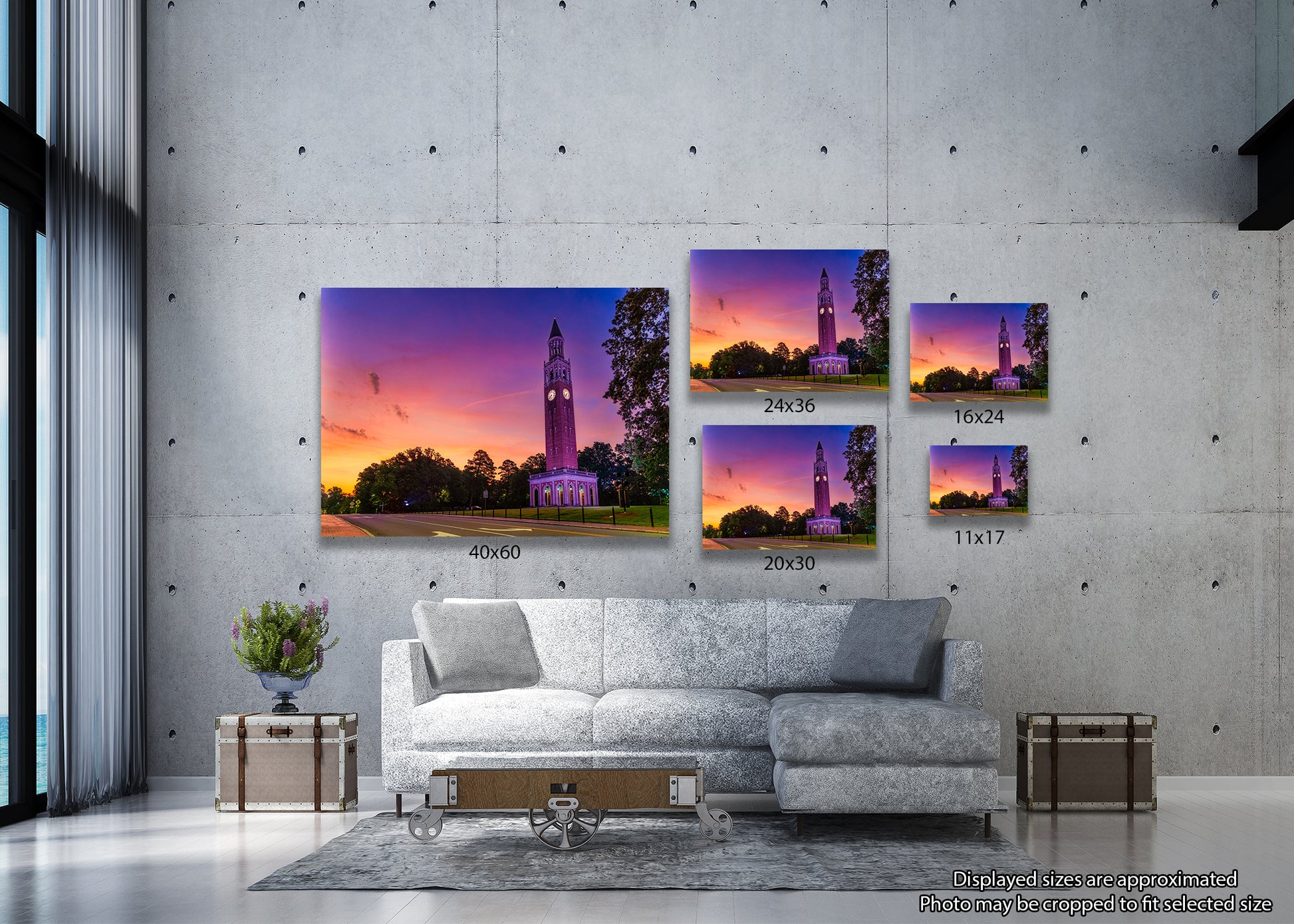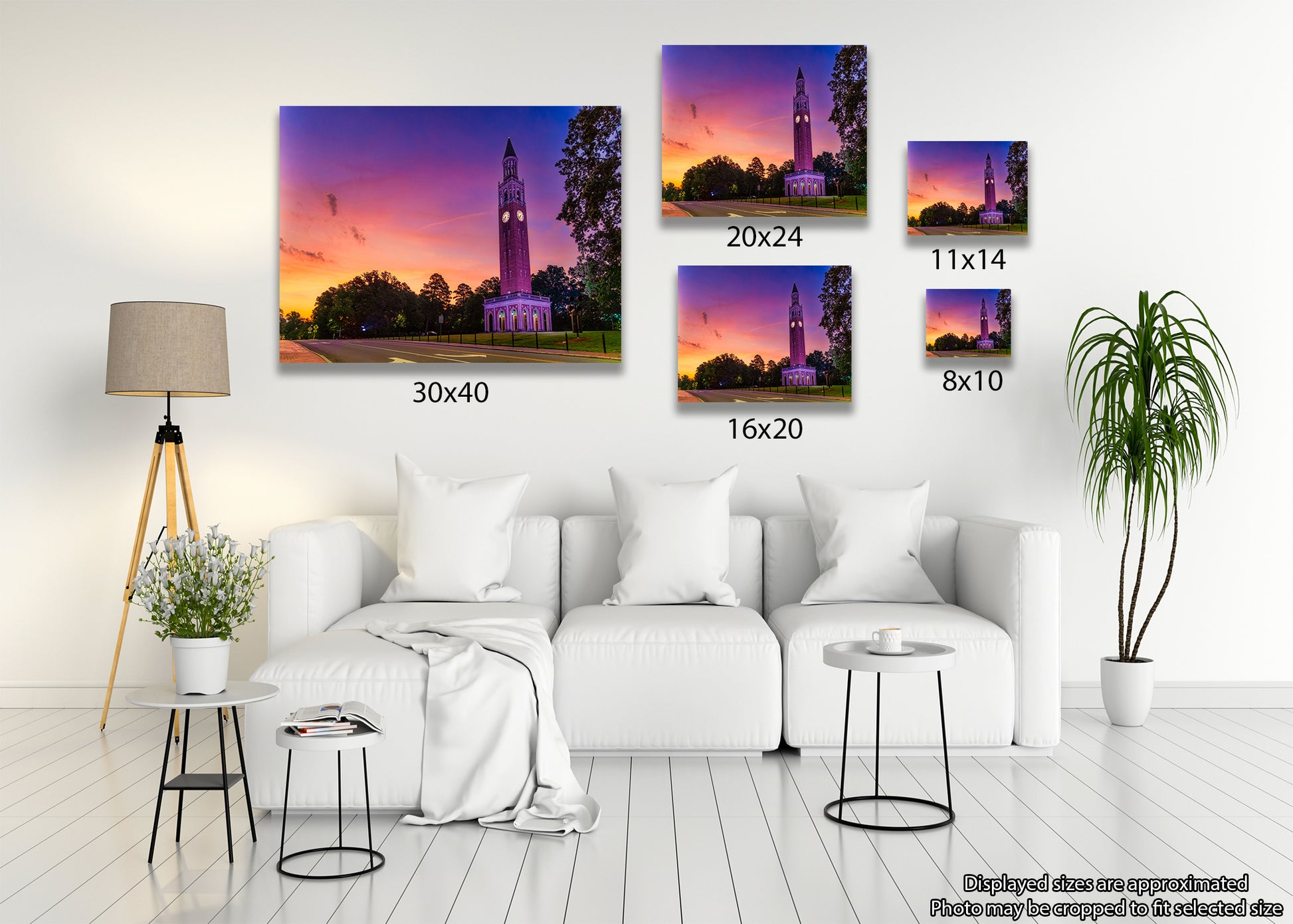 Nuestra decoración de pared "Amanecer en el Campanario" captura la impresionante belleza del Campanario Morehead-Patterson de la Universidad de Carolina del Norte en Chapel Hill. Con sus brillantes tonos de amanecer, esta obra de arte aportará calidez y luminosidad a cualquier habitación. La imagen de alta calidad está impresa en lienzo premium para una exposición duradera. Perfecta para exalumnos, estudiantes o cualquier fan de los Tar Heels, esta decoración de pared es imprescindible para cualquier espacio con temática de la UNC. Cuélgala y disfruta de un hermoso amanecer todos los días.