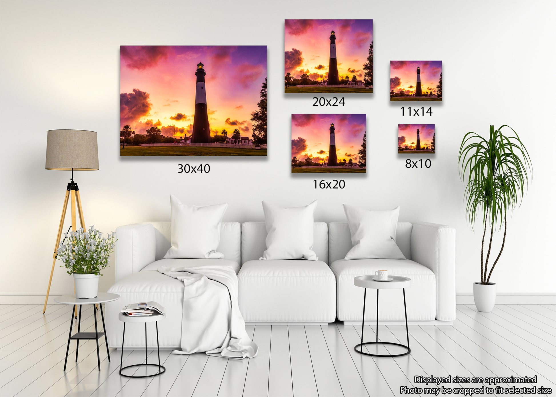 Perfecta para los amantes de los faros, los paisajes costeros o los cielos espectaculares, esta fotografía de bellas artes lleva la serenidad y la belleza de Tybee Island a cualquier espacio.