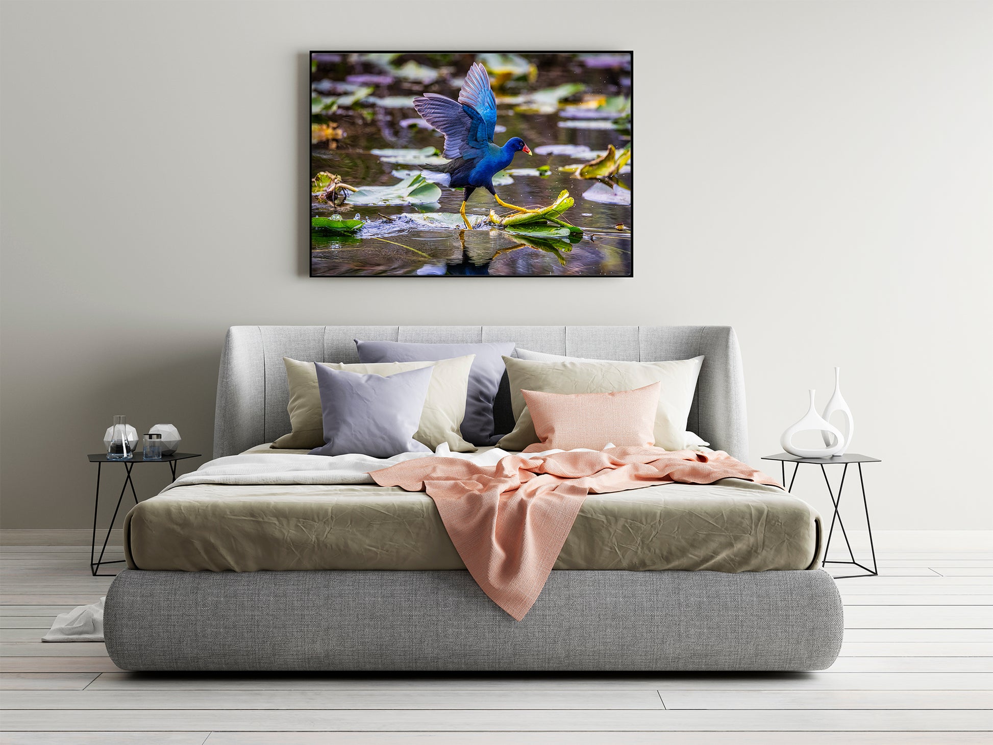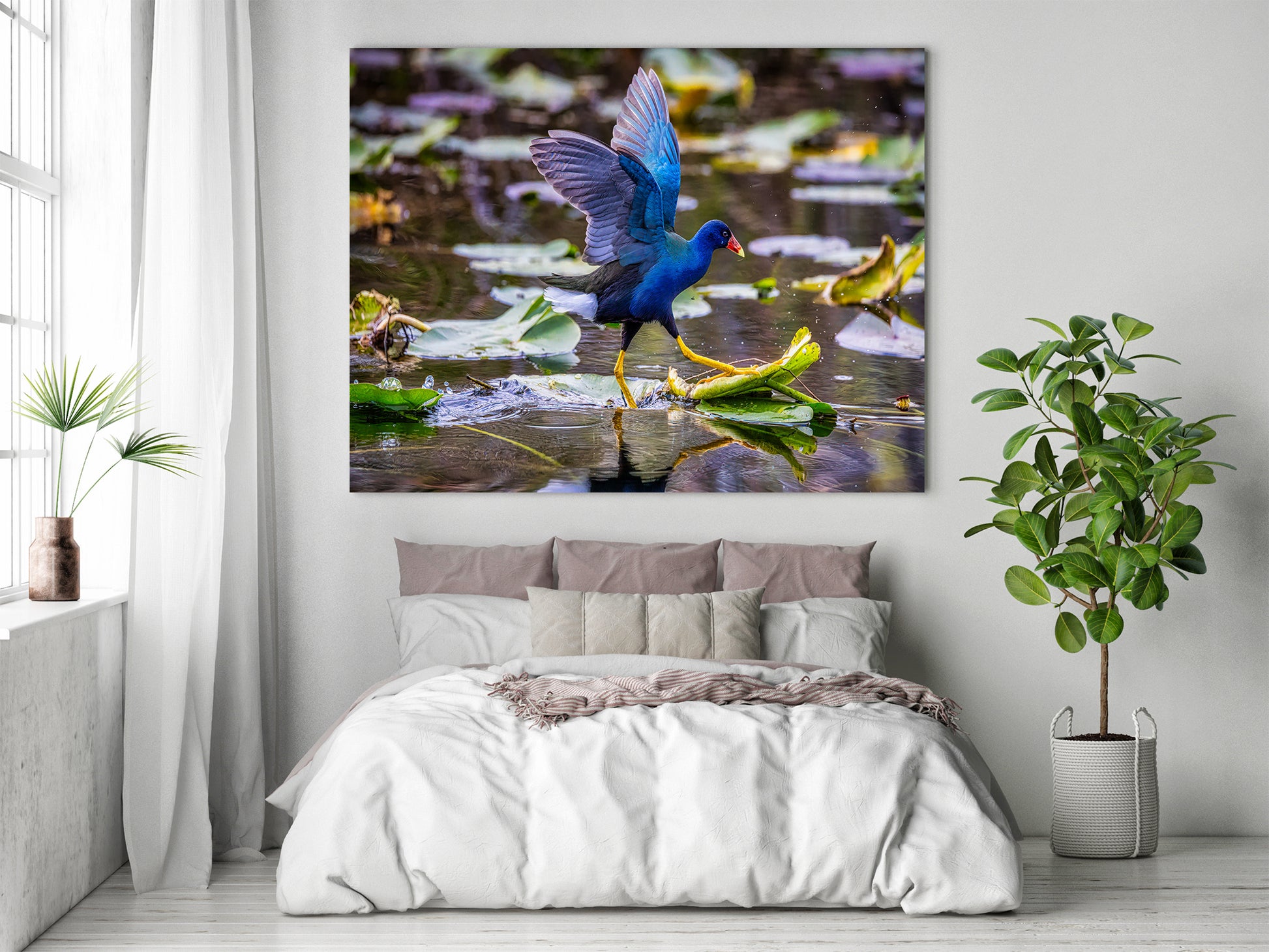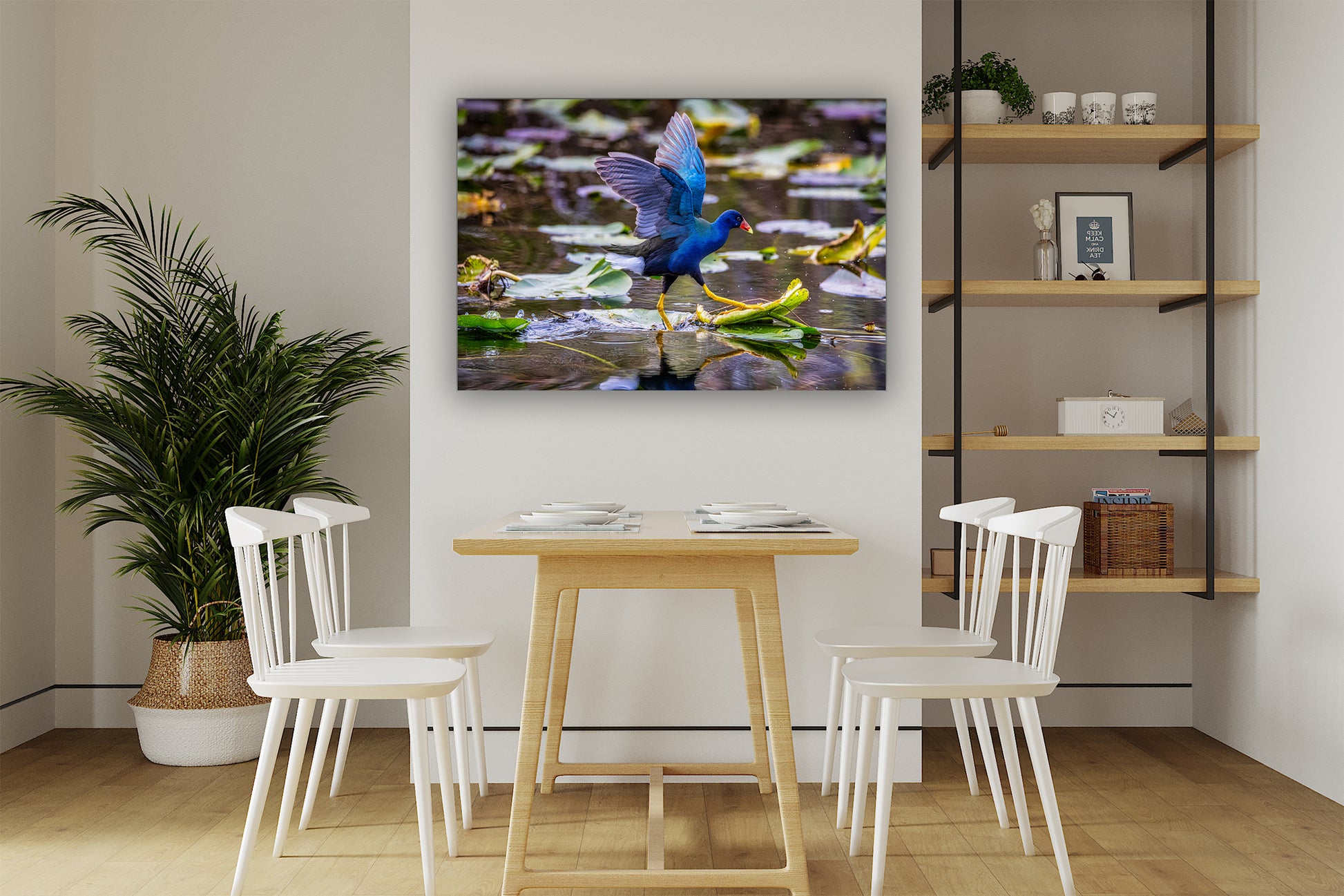 Perfecta para los amantes de las aves y la vida silvestre, esta imagen resalta la belleza y el dinamismo de una de las aves acuáticas más coloridas de la naturaleza. Sus tonos vivos y su cautivador movimiento la convierten en un punto focal impactante, aportando vida y movimiento a cualquier espacio.