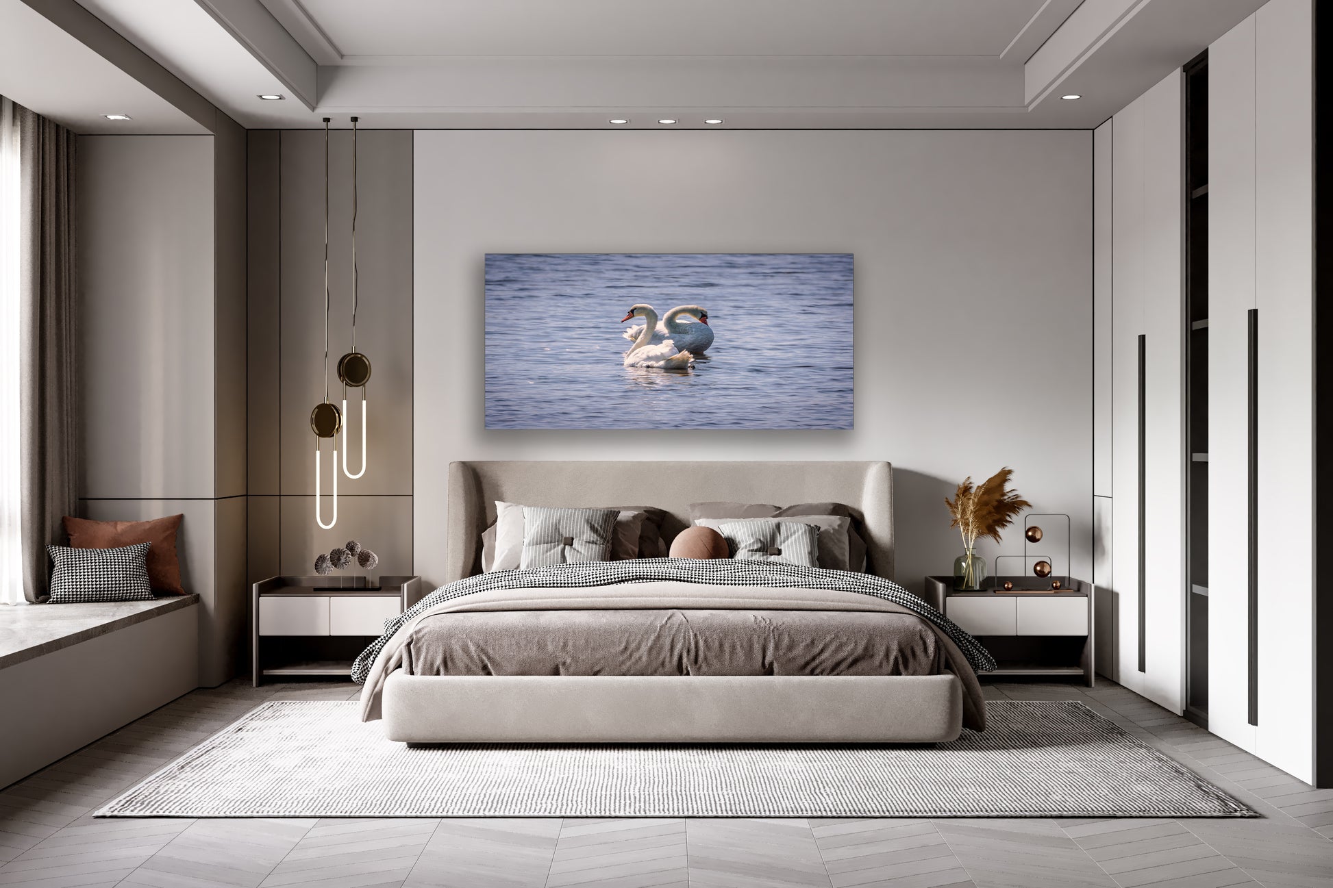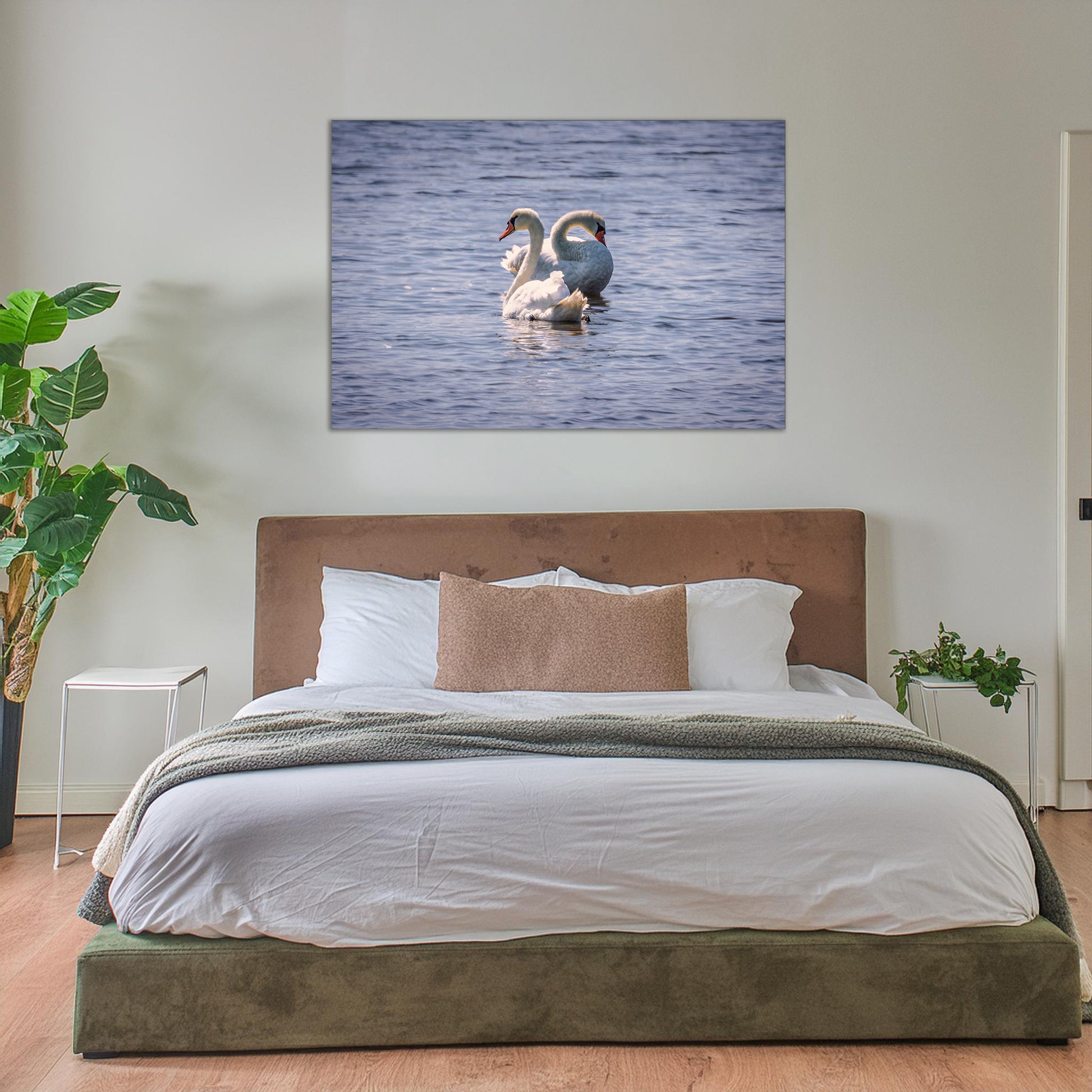 This captivating image captures the graceful elegance of a pair of Tundra Swans gliding effortlessly on the still, reflective surface of the water. The simplicity and purity of this scene evoke a sense of tranquility and the untamed beauty of the natural world. Perfect for nature enthusiasts and those seeking to bring a touch of wild elegance into their living space, this wall art encapsulates the profound beauty found in the subtle movements of these majestic birds and the calm of their watery surroundings. Bring the wonder of these swans' journey into your home, and enjoy a daily reminder of the peaceful charm of our planet's wildlife.