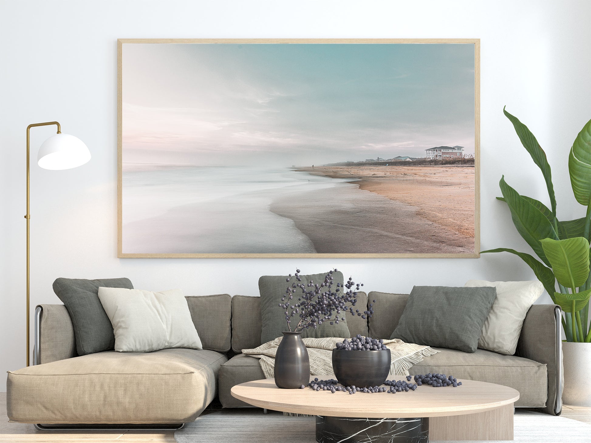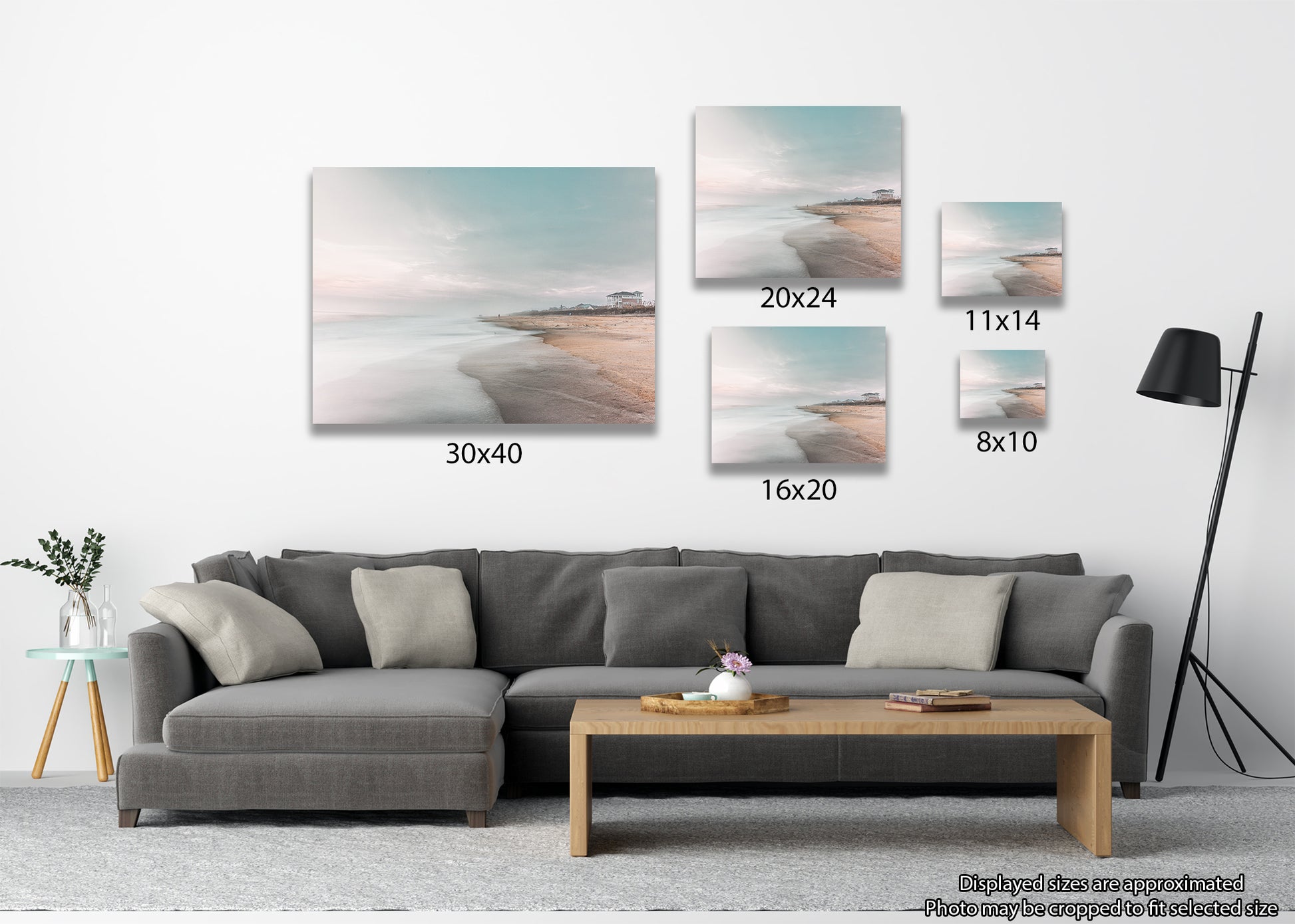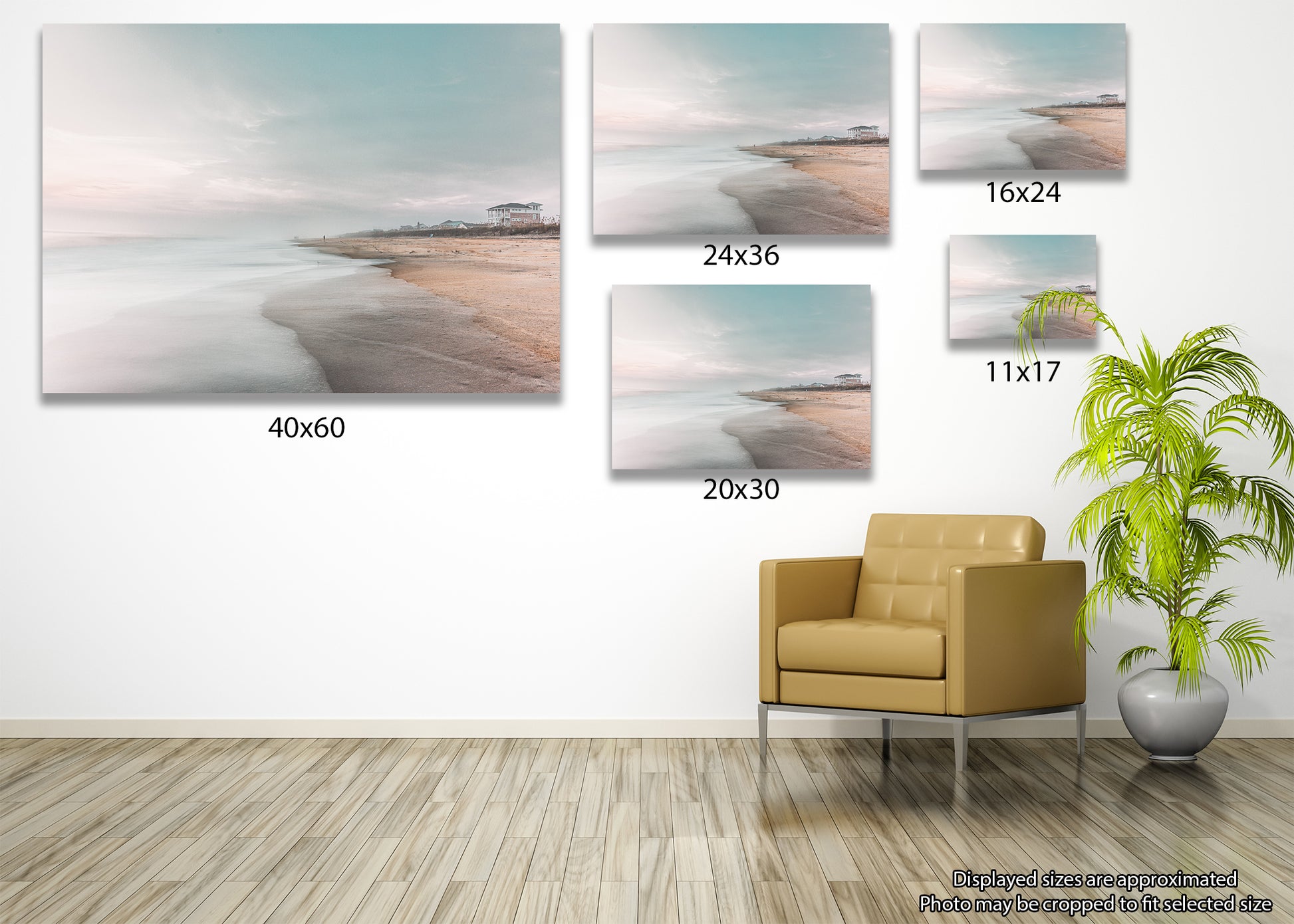Bring the serene beauty of the Outer Banks into your home with our Misty Morning wall decor. This stunning photograph captures the tranquil beach near Avalon Pier, enveloped in a gentle sea spray and mist. The long exposure technique used in this shot creates a dramatic and ethereal effect, making it a perfect addition to any beach-themed decor. Hang this piece in your living room, bedroom, or office to evoke a sense of calm and relaxation. With its soft and soothing color palette, our Misty Morning print is sure to become a cherished piece in your collection.