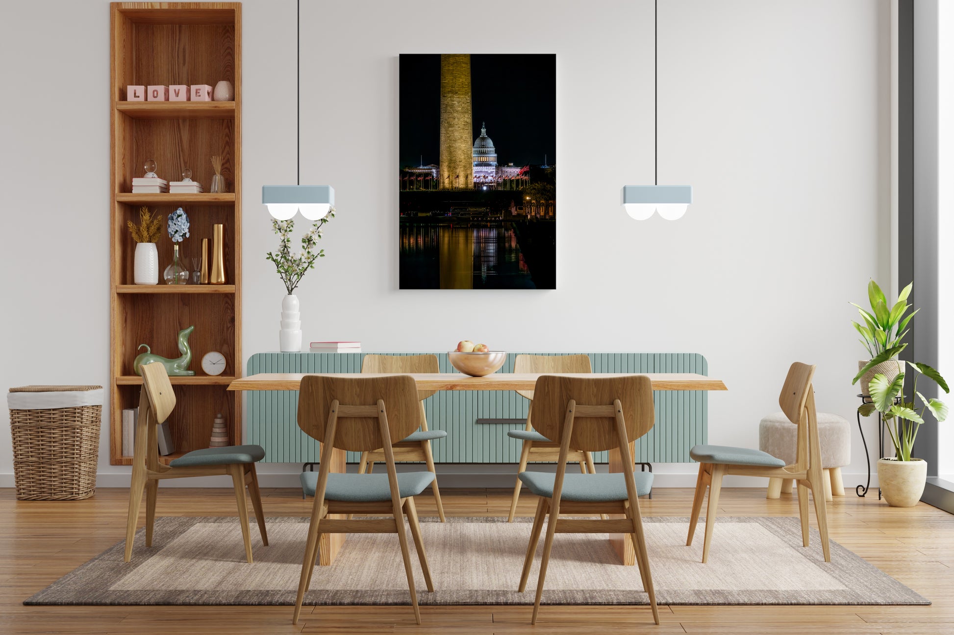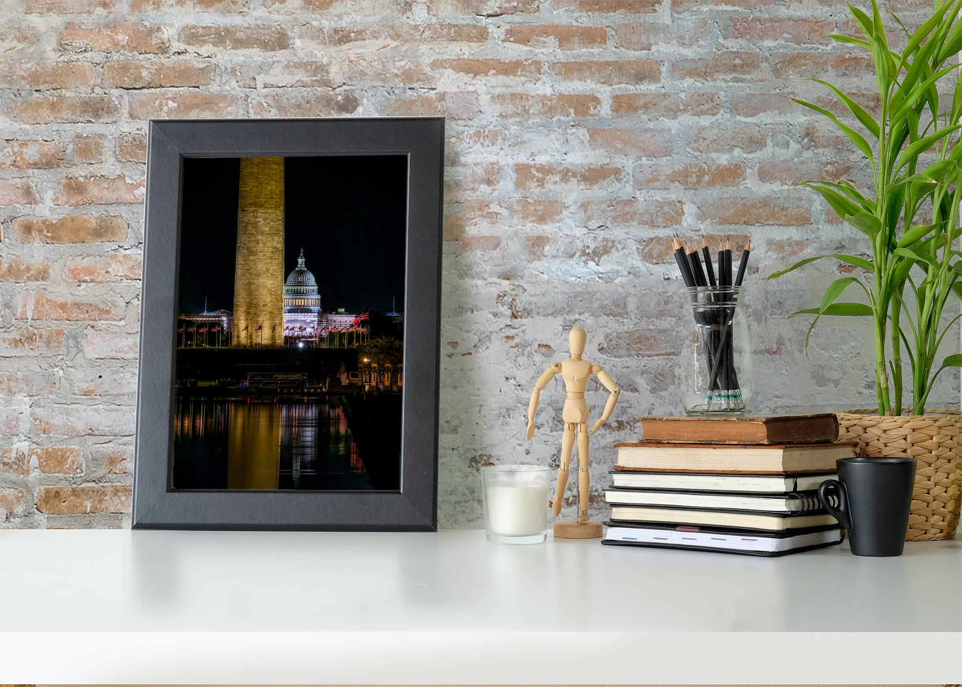 The lights at the National Mall make it impossible to see the stars, and the moon wasn’t cooperating this night either. But that doesn’t mean that there aren’t sights to see when the sun goes down. This photo was taken from the Lincoln Memorial and includes the Reflecting Pool, Washington Monument, WWII Memorial and Capitol Building (under construction).
