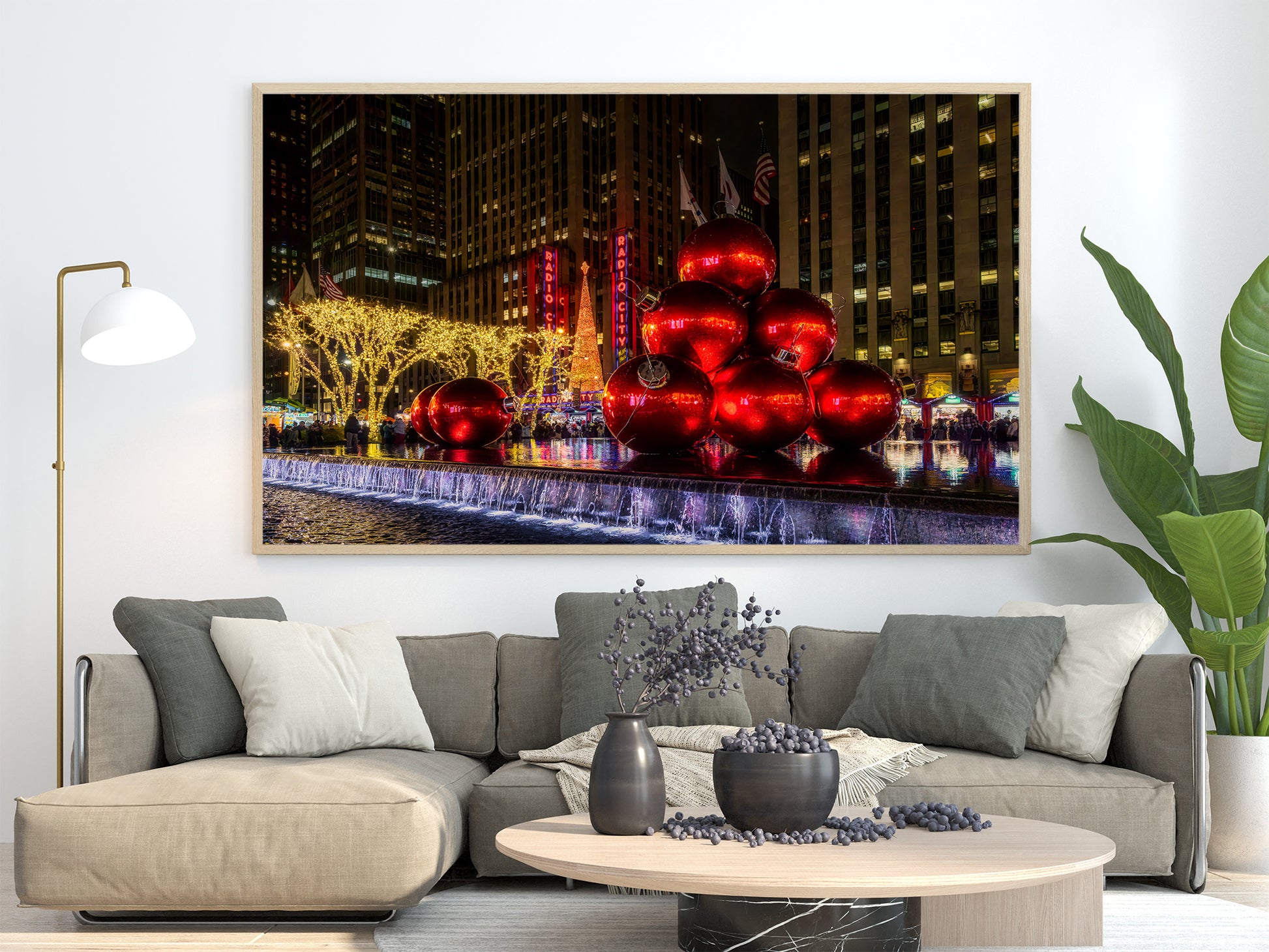 Perfect for holiday décor lovers and fans of classic NYC moments, this print brings warmth, nostalgia, and a touch of city magic into any space. Displayed during the holidays or year-round, it adds a cheerful focal point that celebrates the spirit of the season in one of the most iconic entertainment districts in the world.
