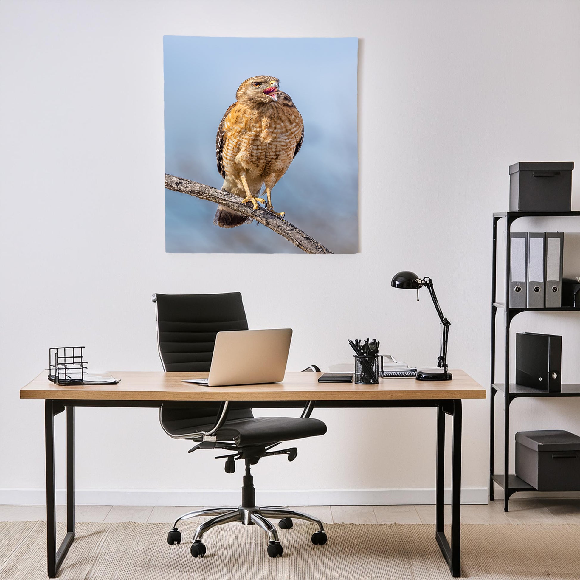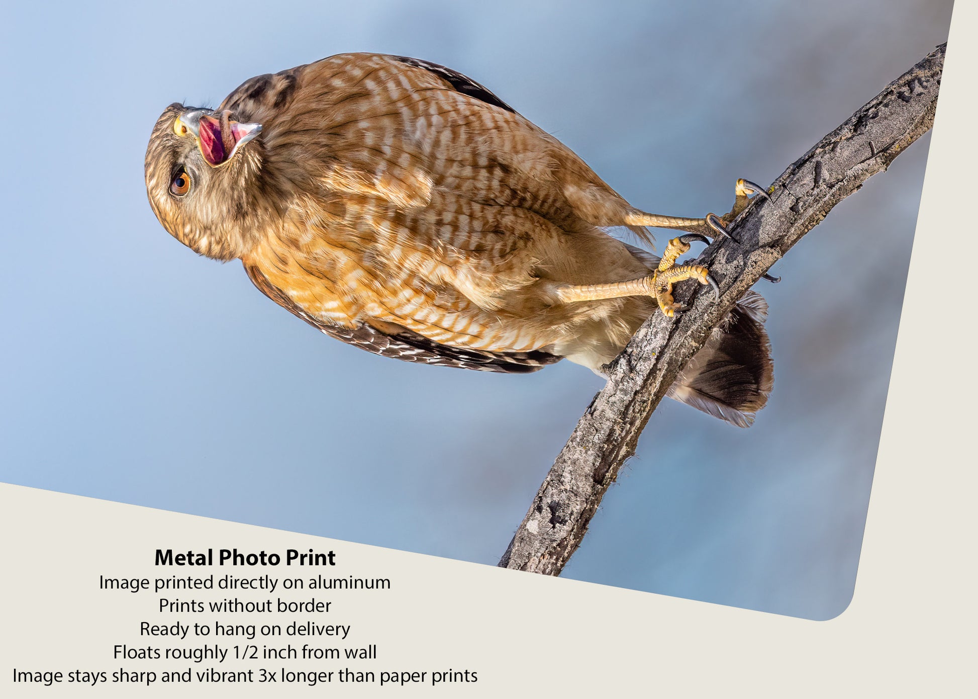 This stunning print of a red-shouldered hawk eating a snake is sure to add a unique statement to any home decor. Displayed on fine-art paper, the hawk's impressive snake-tongued detail is brought to life. For a contemporary look, choose our floating aluminum print that will add a modern touch to any wall. Our Snake-tongued Hawk print is the perfect addition for any bird lover's home.