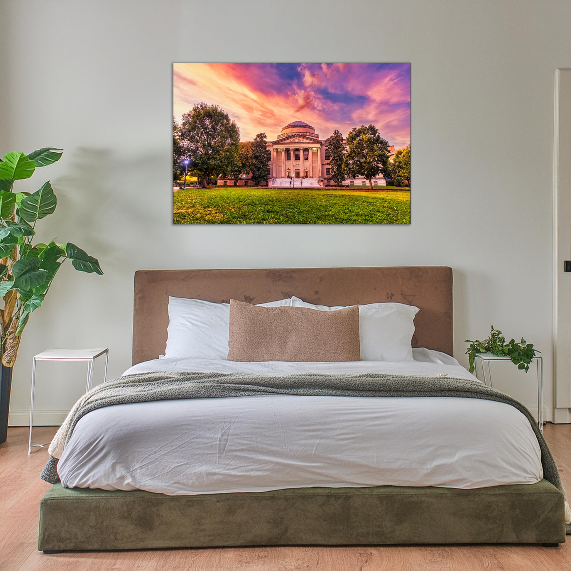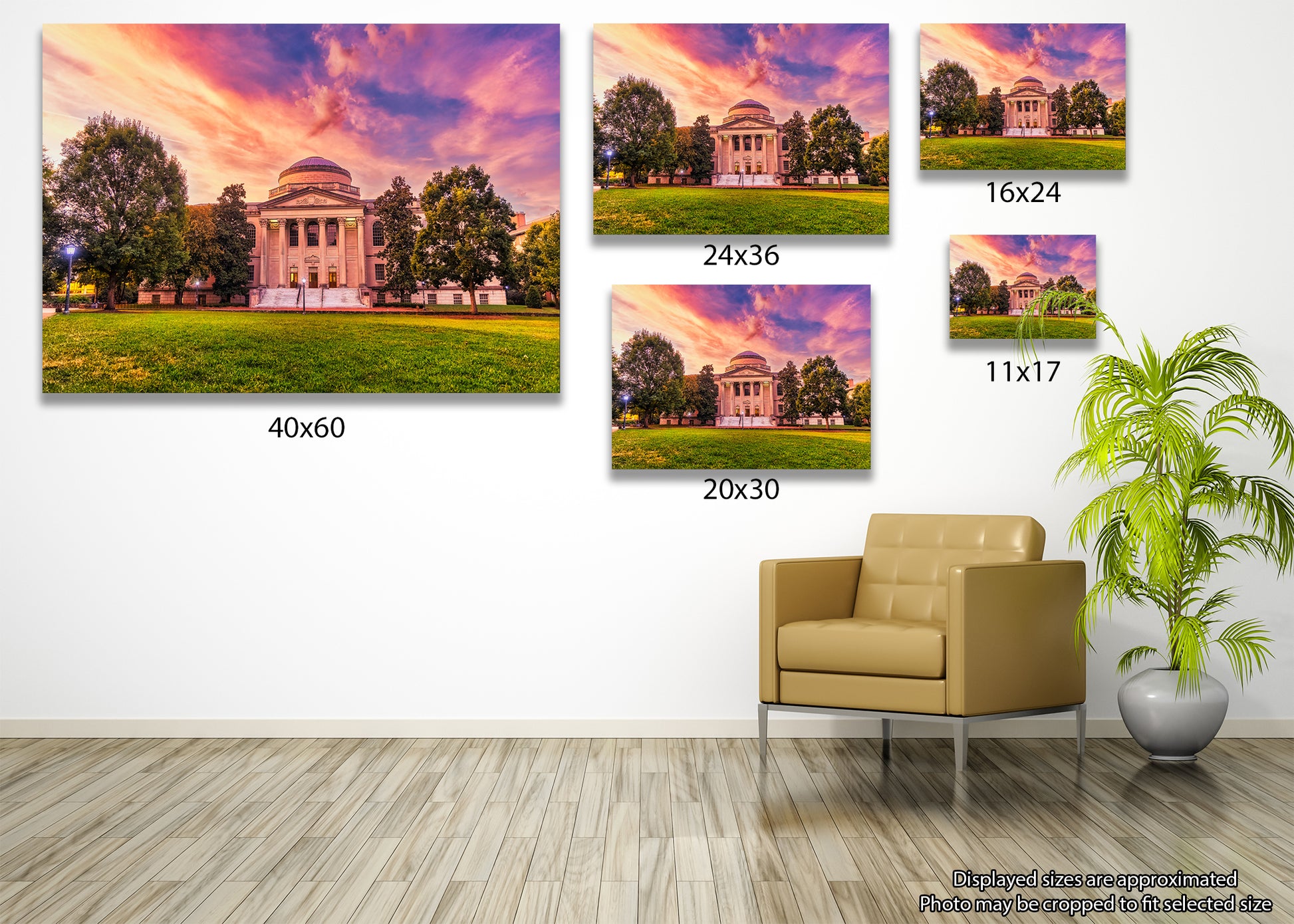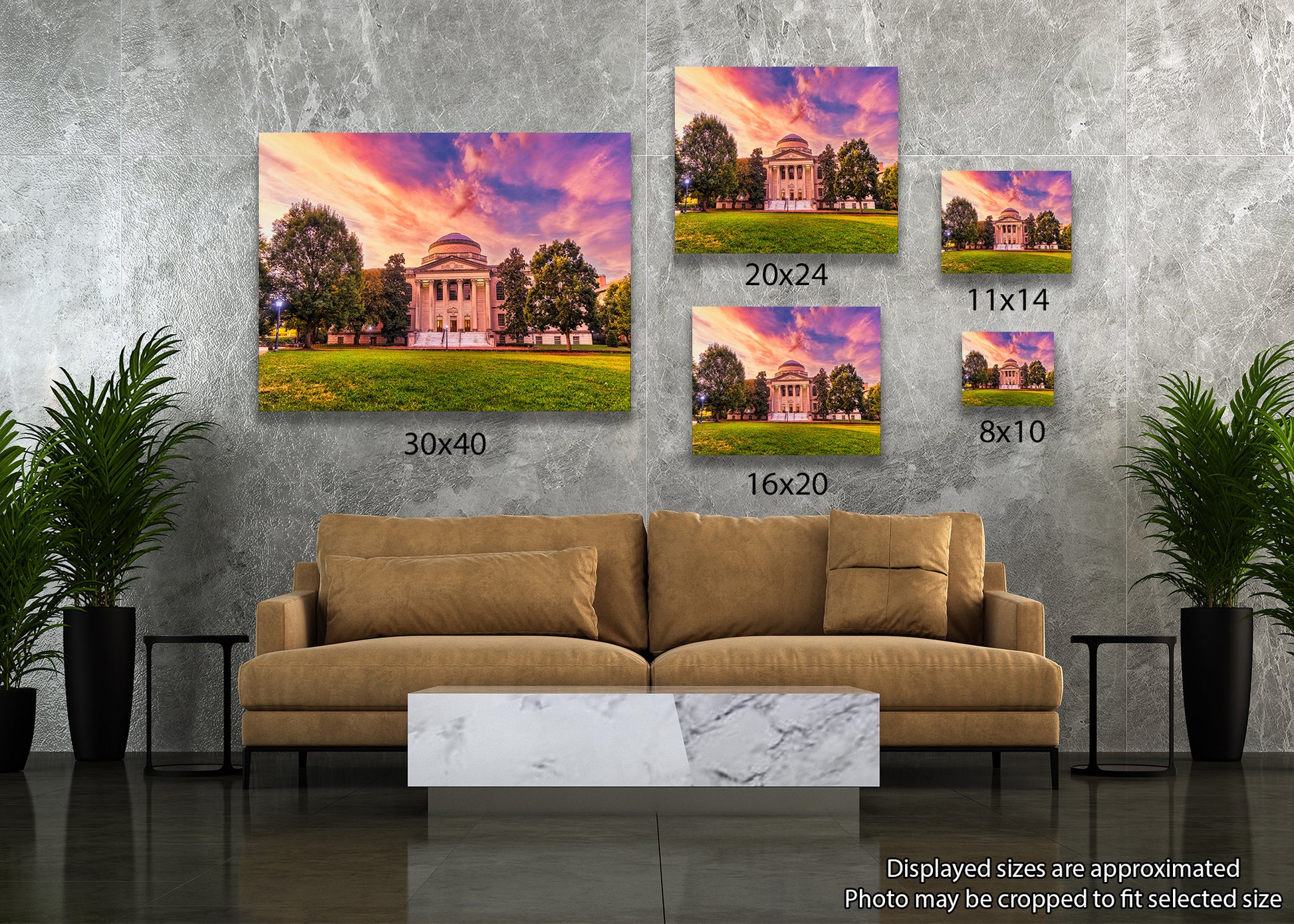 Transform your space with the enchanting beauty of the Louis Round Library at UNC at sunrise. This stunning wall art photo print captures the library bathed in the soft, pink hues of the morning sun, radiating a sense of serenity and academic inspiration. The play of light and shadow accentuates the library's timeless architecture, making it an ideal addition for any art connoisseur, a proud Tar Heel, or those seeking a touch of elegance in their decor. Let the tranquil charm of this print grace your walls and imbue your surroundings with the warmth and wisdom of a new day dawning over this beloved institution.