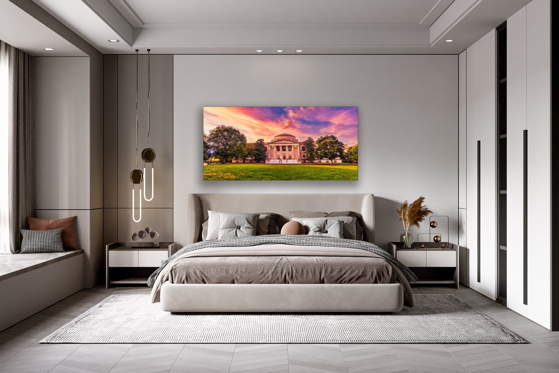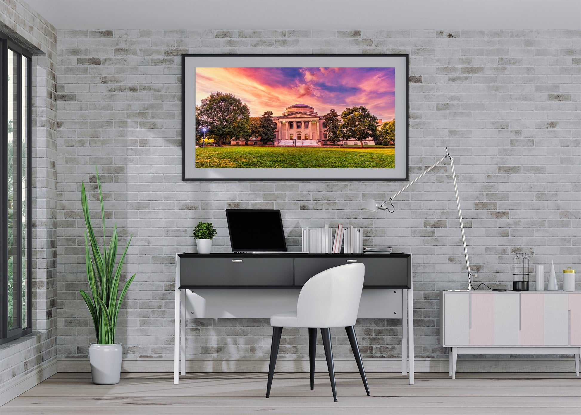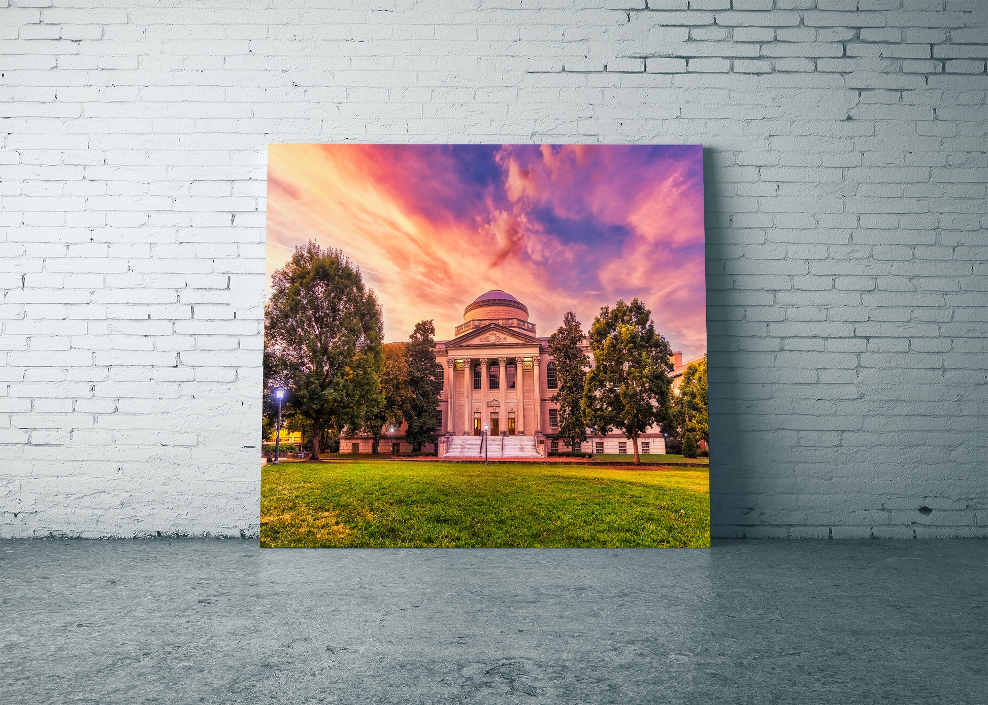 Transform your space with the enchanting beauty of the Louis Round Library at UNC at sunrise. This stunning wall art photo print captures the library bathed in the soft, pink hues of the morning sun, radiating a sense of serenity and academic inspiration. The play of light and shadow accentuates the library's timeless architecture, making it an ideal addition for any art connoisseur, a proud Tar Heel, or those seeking a touch of elegance in their decor. Let the tranquil charm of this print grace your walls and imbue your surroundings with the warmth and wisdom of a new day dawning over this beloved institution.