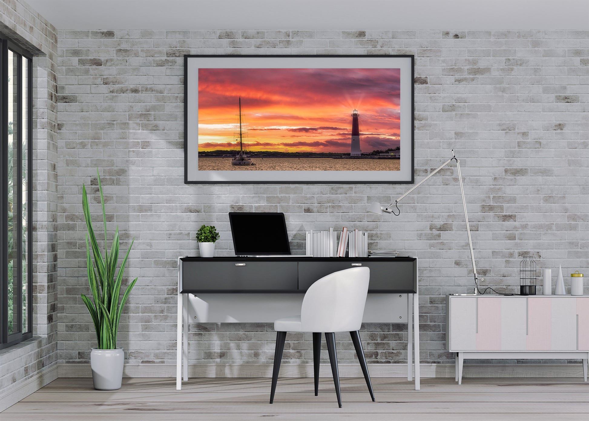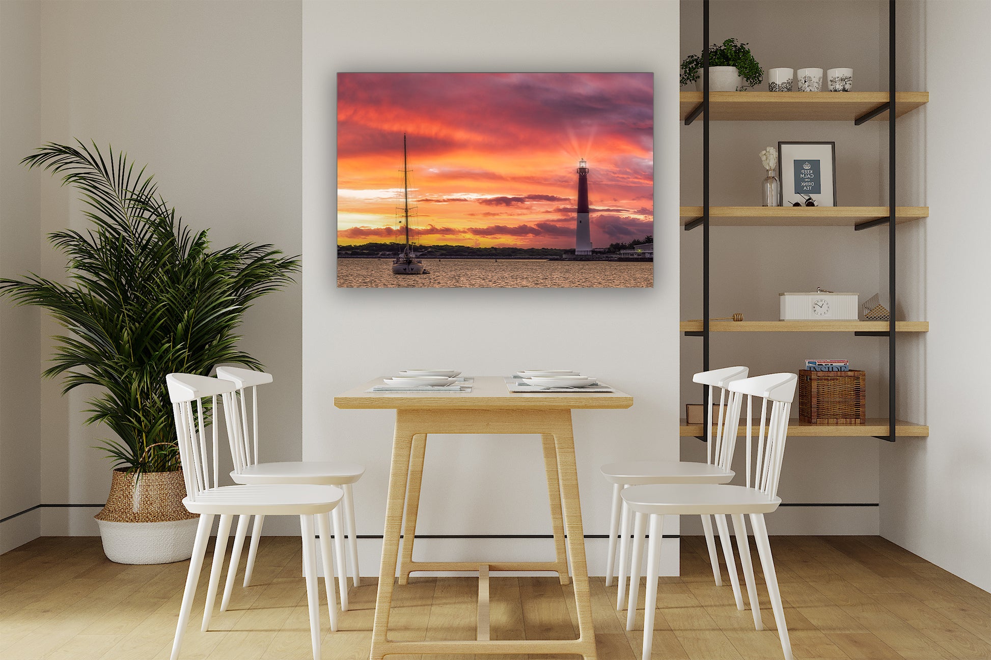 This photograph brings together vibrant coastal color and peaceful nautical charm, making it a striking centerpiece for any space. It’s ideal for anyone who cherishes maritime moments, New Jersey landmarks, or simply the quiet magic of sunrise by the sea.