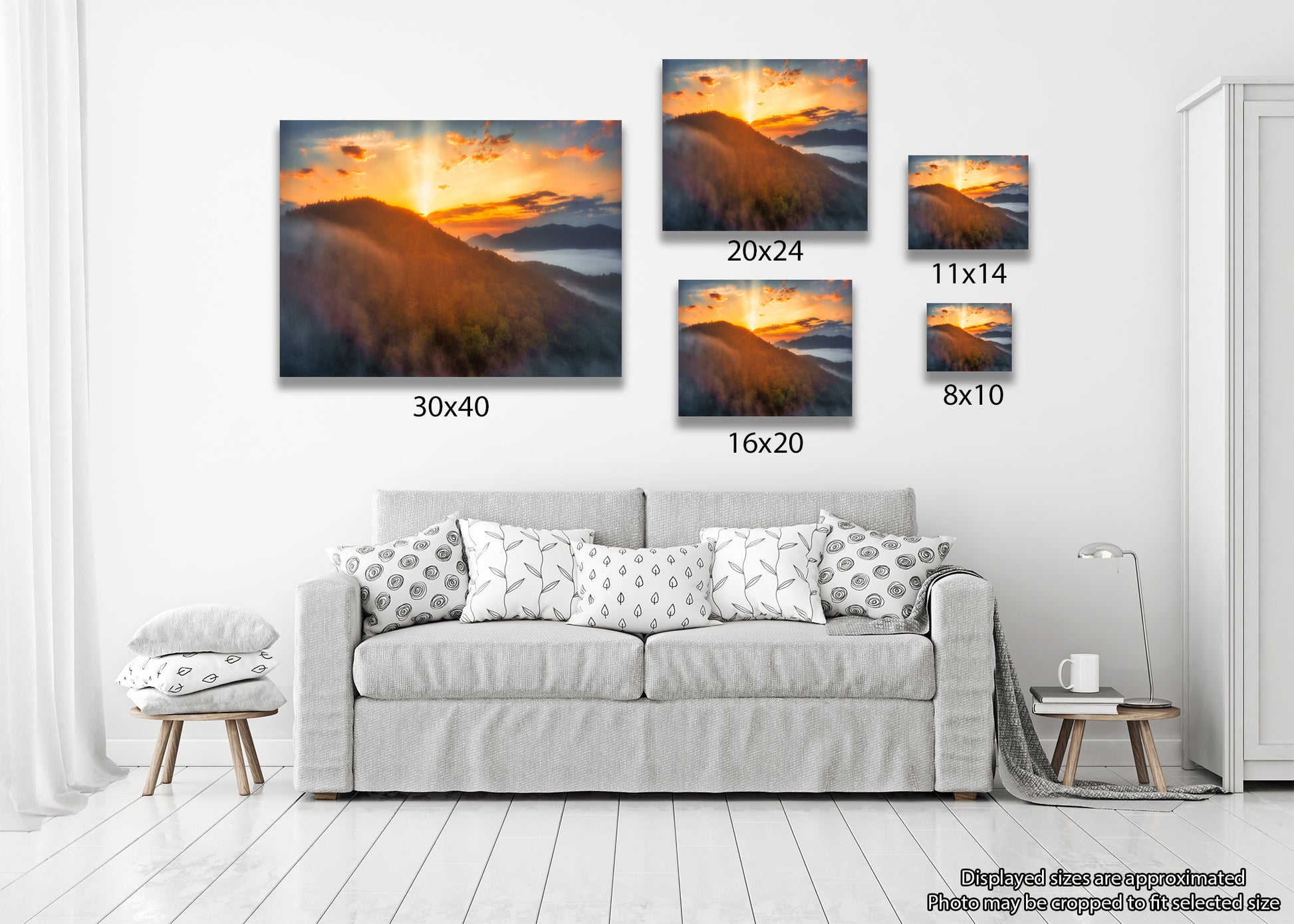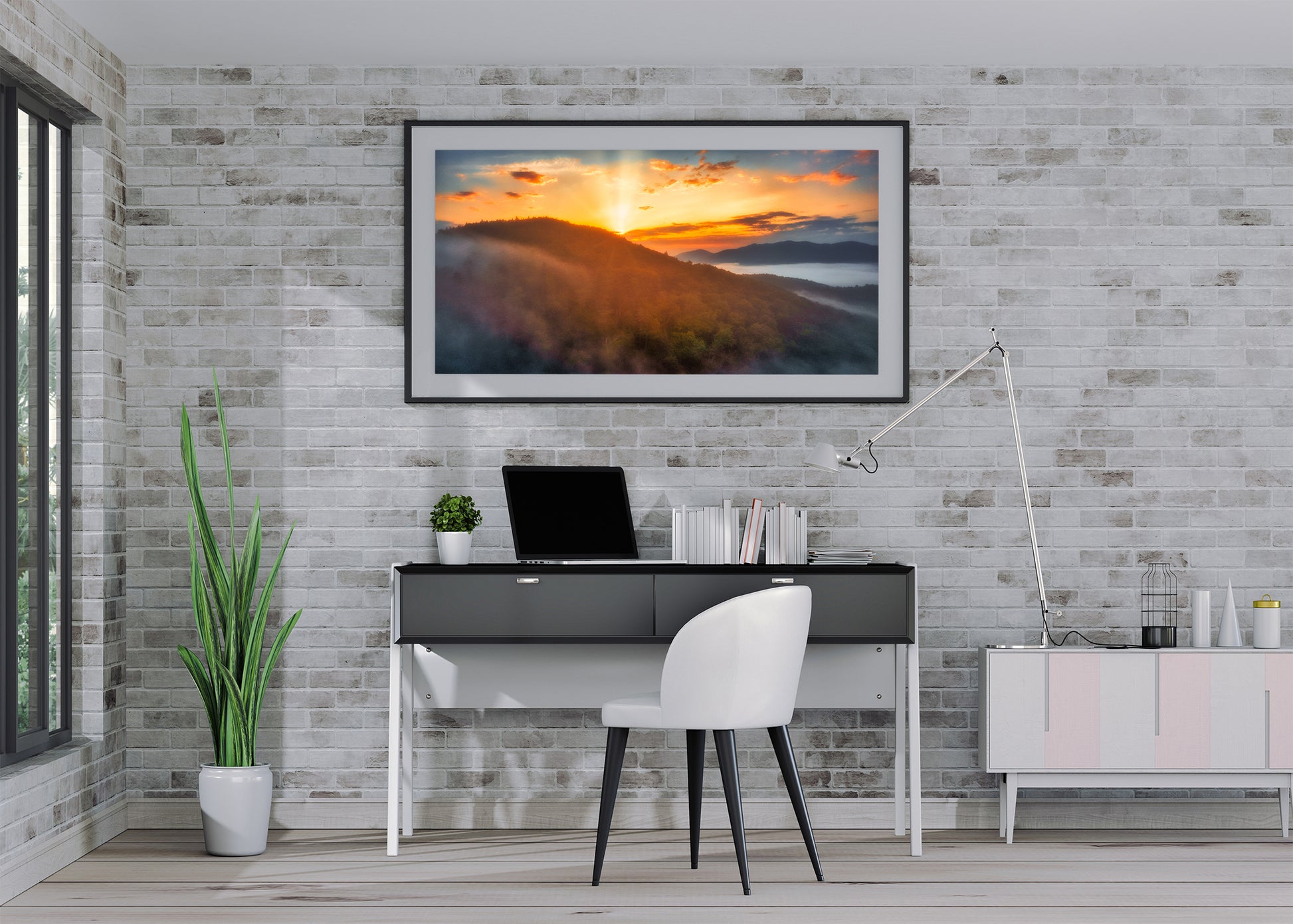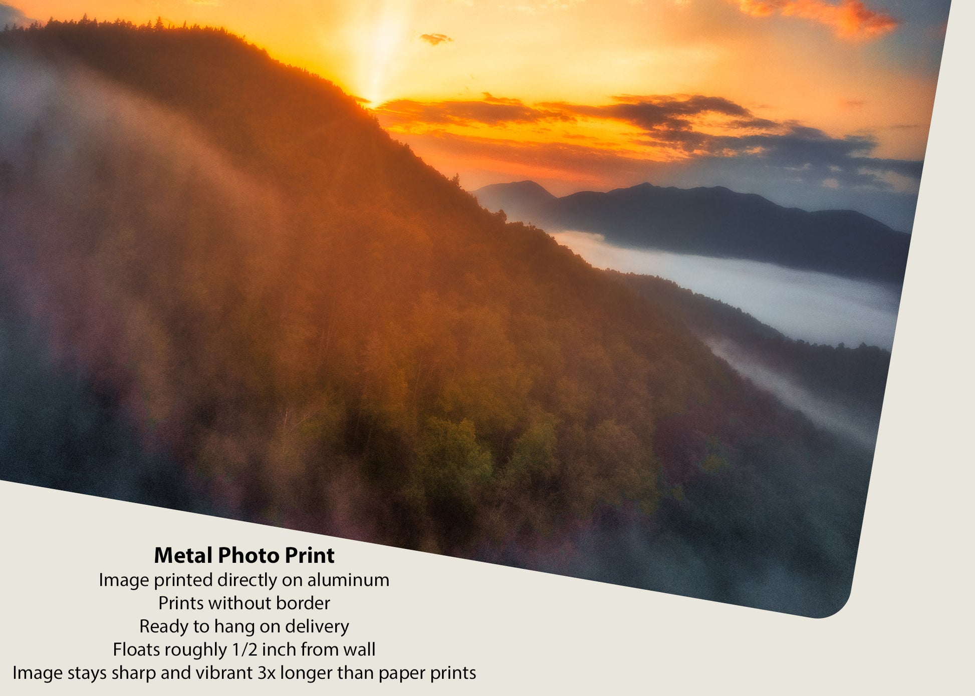 View of the sunrise bursting through the thick morning clouds over Lake Placid.