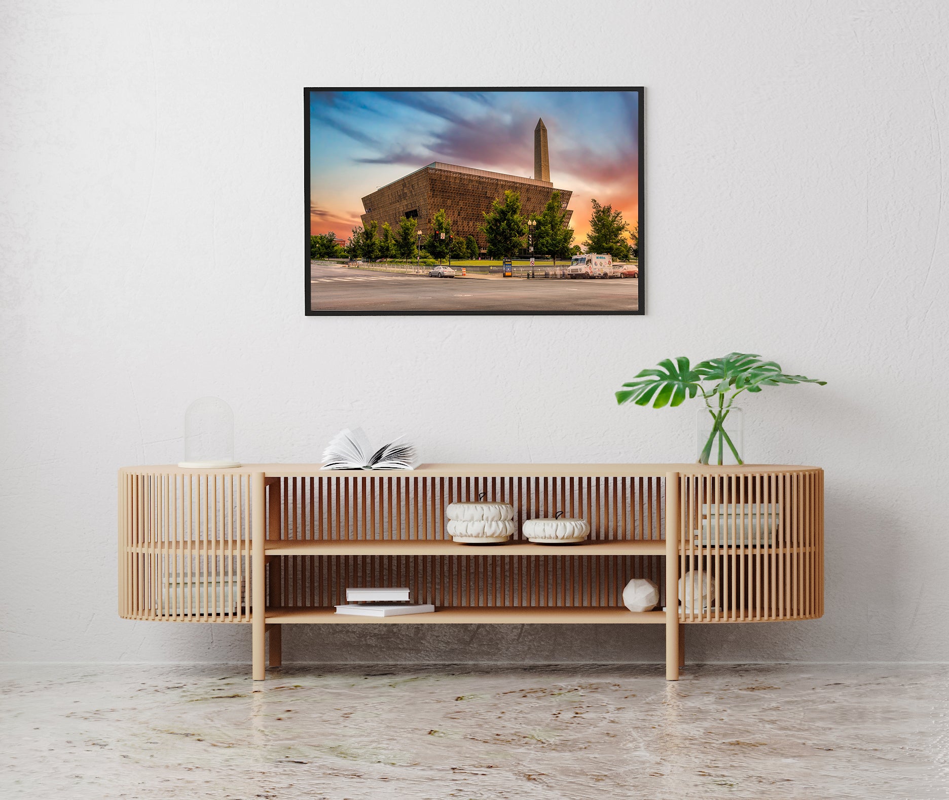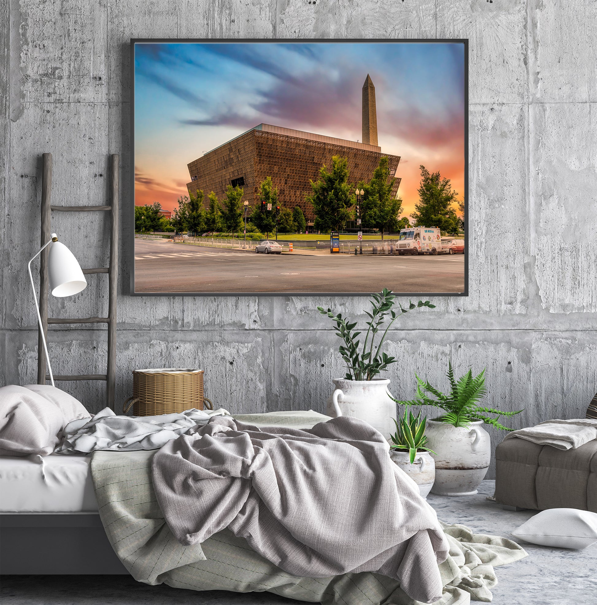 As the sun dips toward the horizon, the National Museum of African American History and Culture is transformed into something truly magnetic. The building's iconic three-tiered bronze corona, inspired by the Yoruban column and the craftsmanship of enslaved ironworkers, catches the warm amber and copper tones of the fading sky, radiating a glow that feels almost ceremonial. Silhouetted against a canvas of rich, saturated color, this landmark on the National Mall stands as both a monument and a masterpiece.