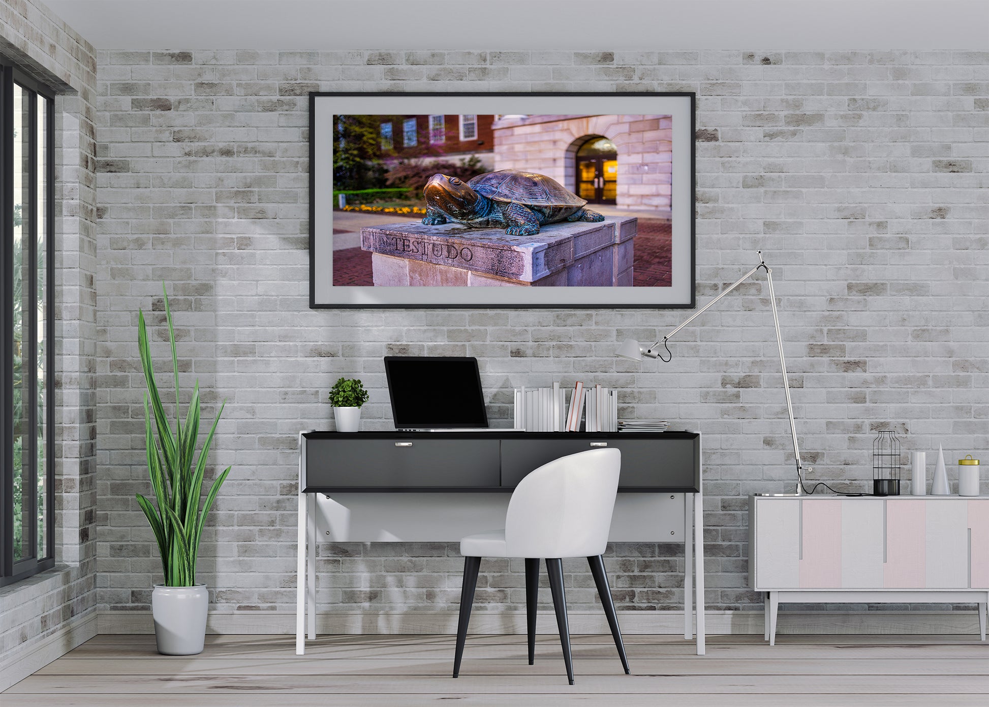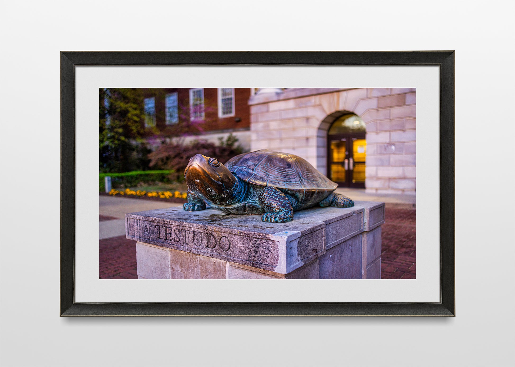 Shot of the Testudo Statue at the University of Maryland outside of McKeldin Library.