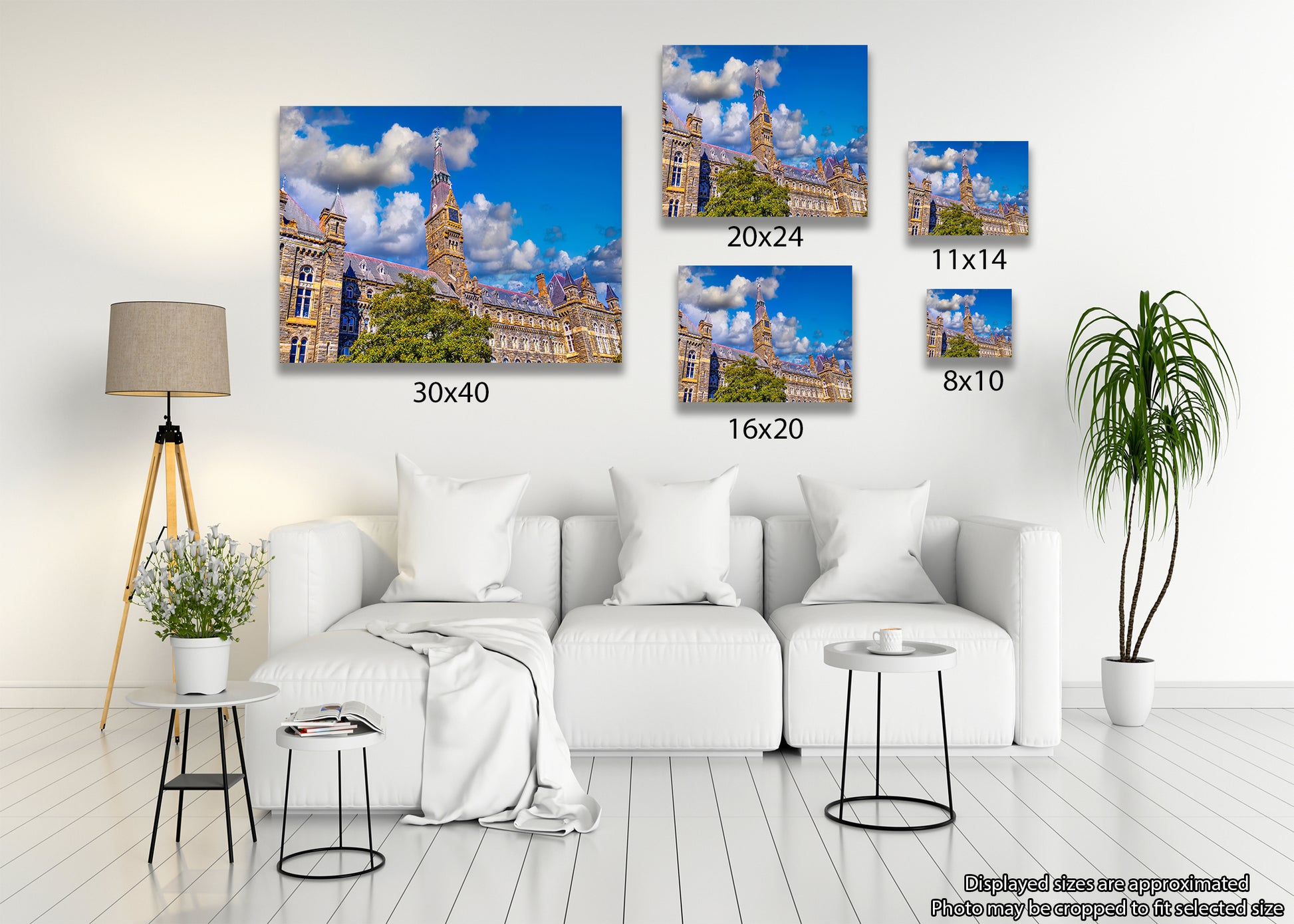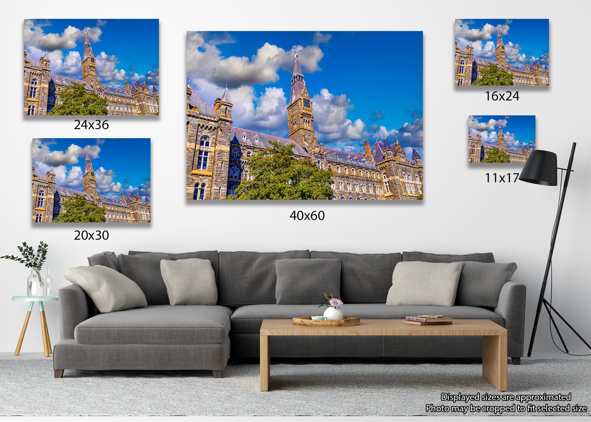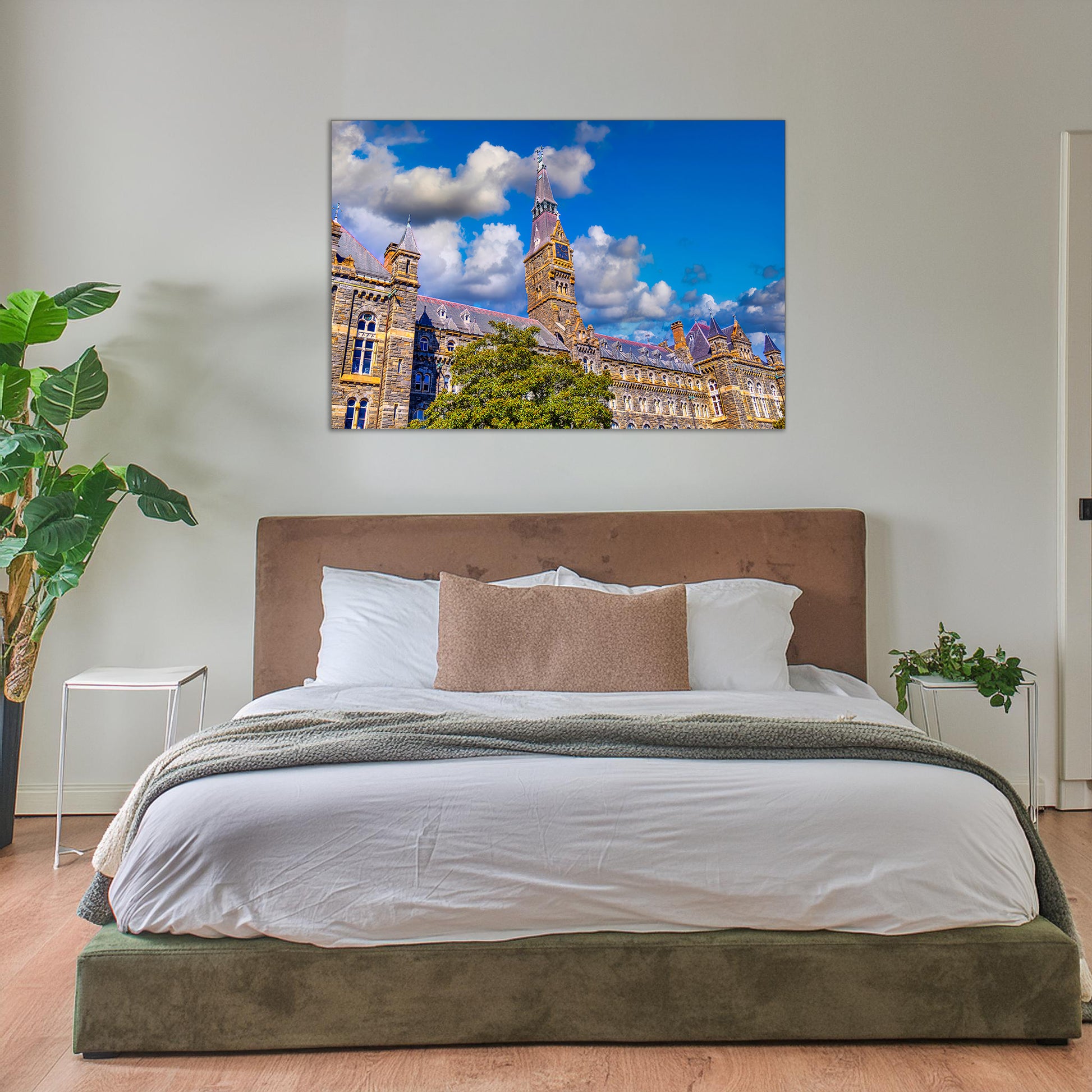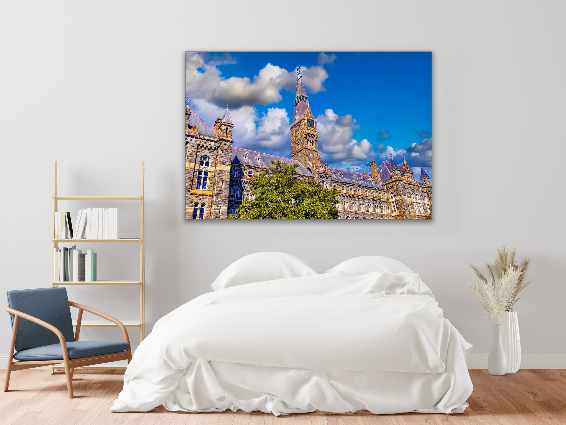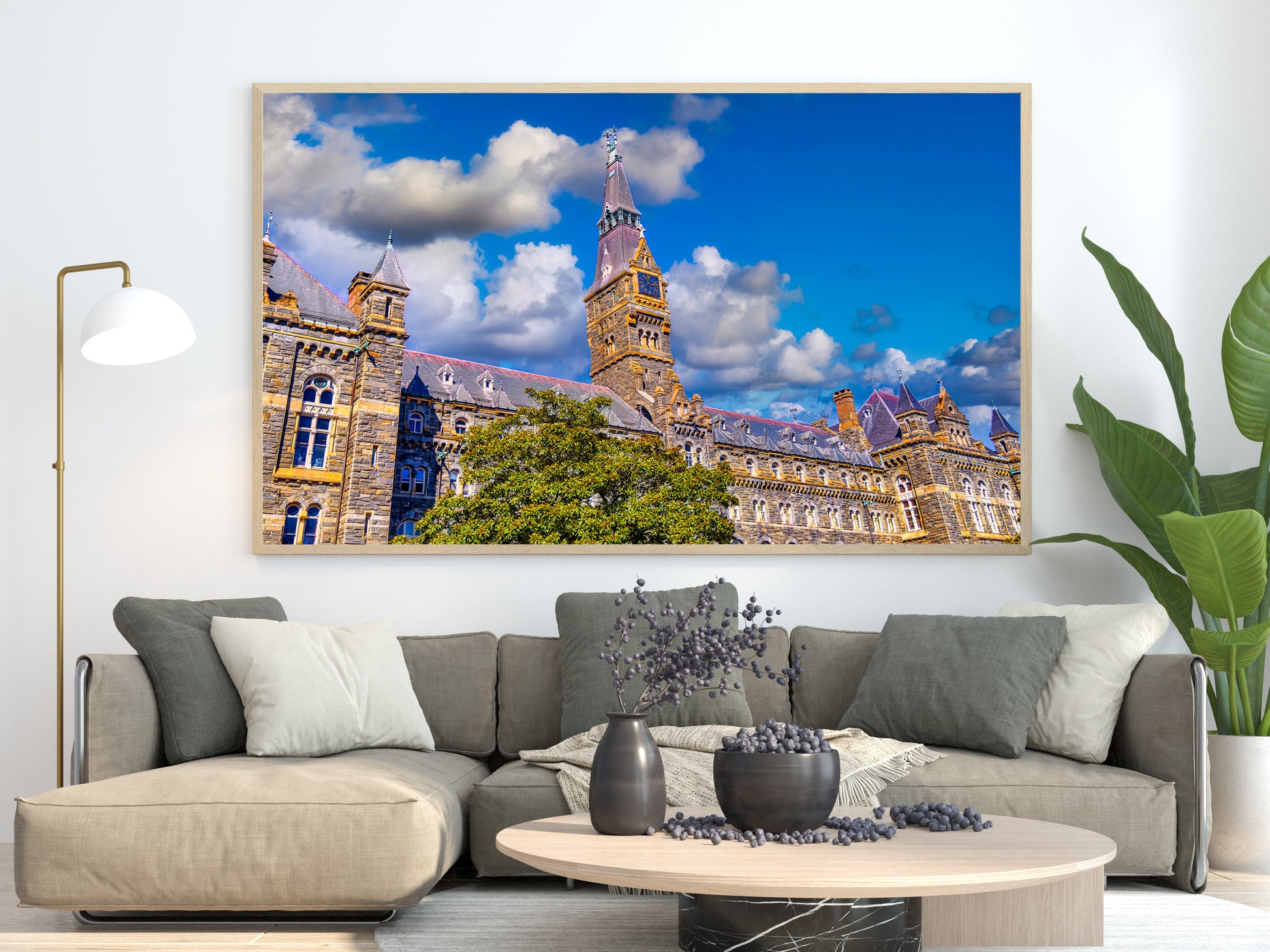 View of Healy Hall at Georgetown University on a bright but frigid spring day.